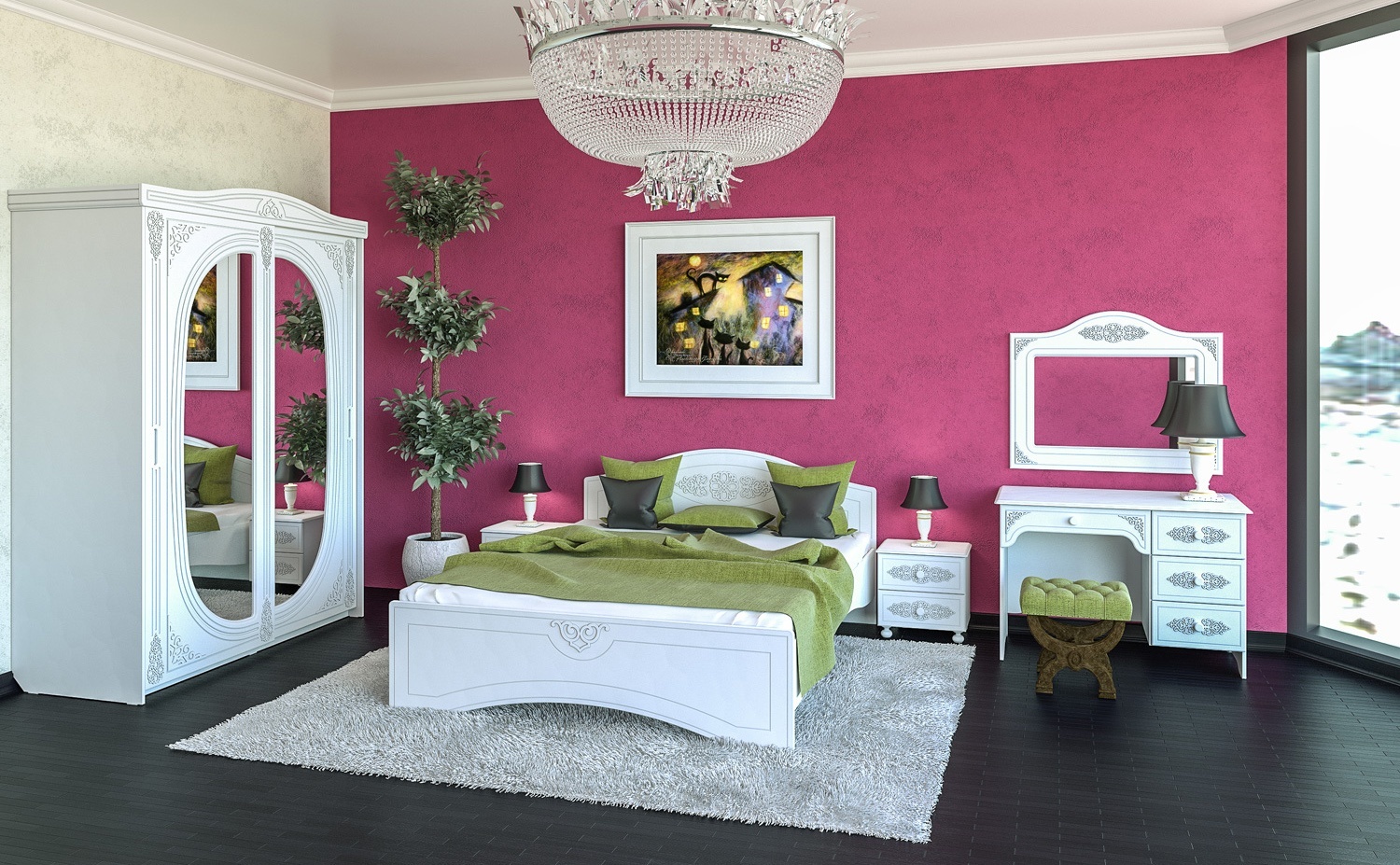 «Ассоль» - мягкий мерцающий глянец и эксклюзивный узор, повторяющийся на фасадах всех модулей идеален для создания нежного уютного интерьера спальни, гостиной, детской, прихожей.