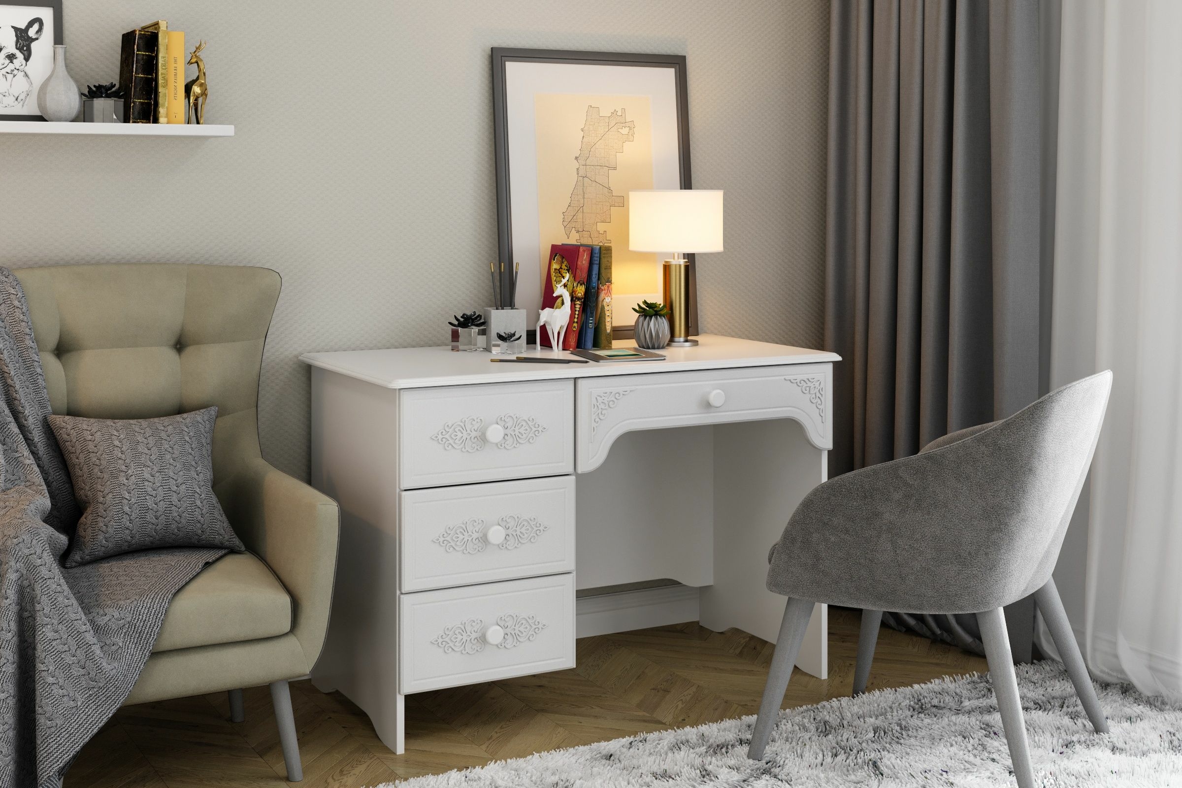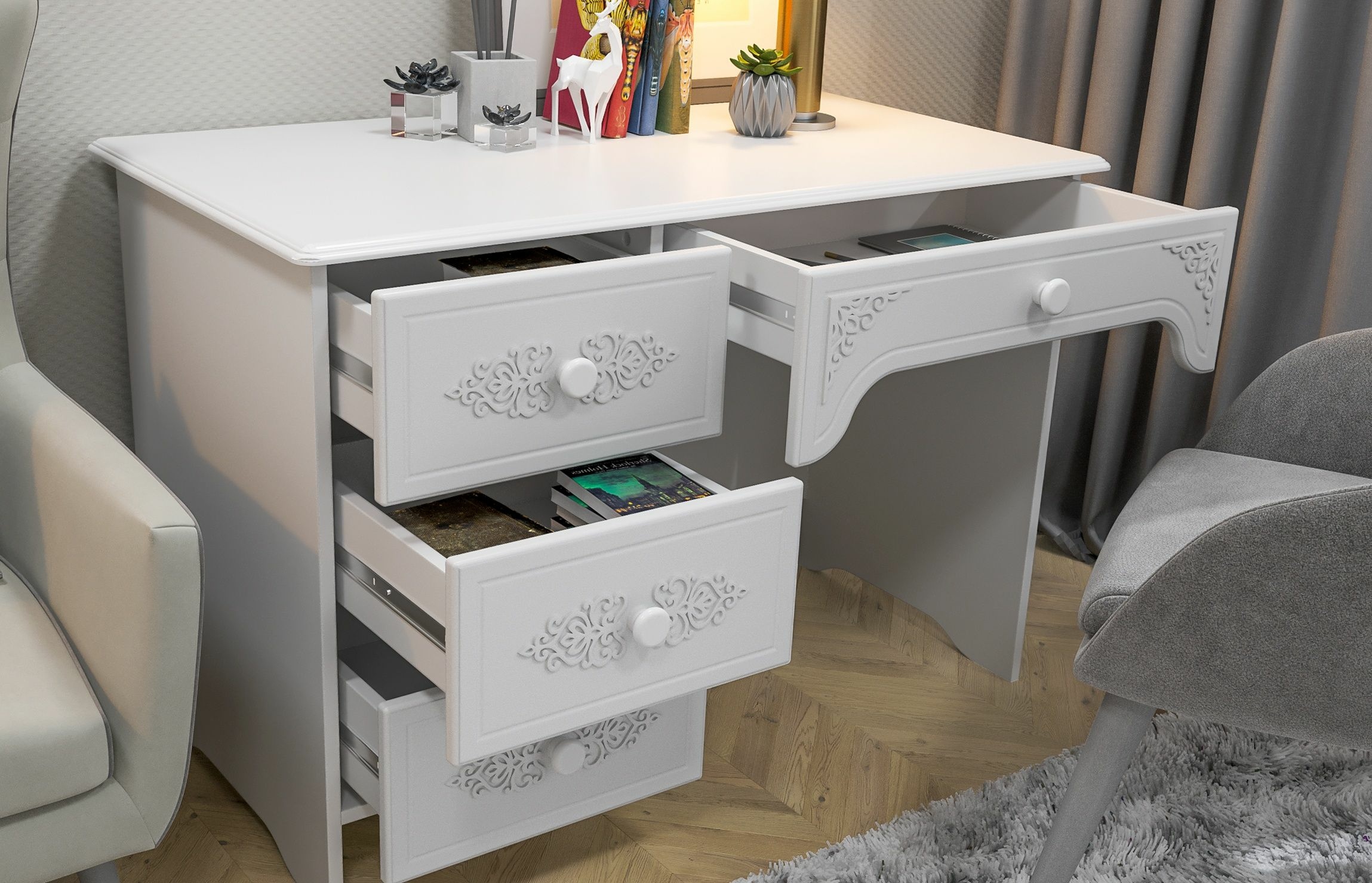 «Ассоль» - мягкий мерцающий глянец и эксклюзивный узор, повторяющийся на фасадах всех модулей идеален для создания нежного уютного интерьера спальни, гостиной, детской, прихожей.