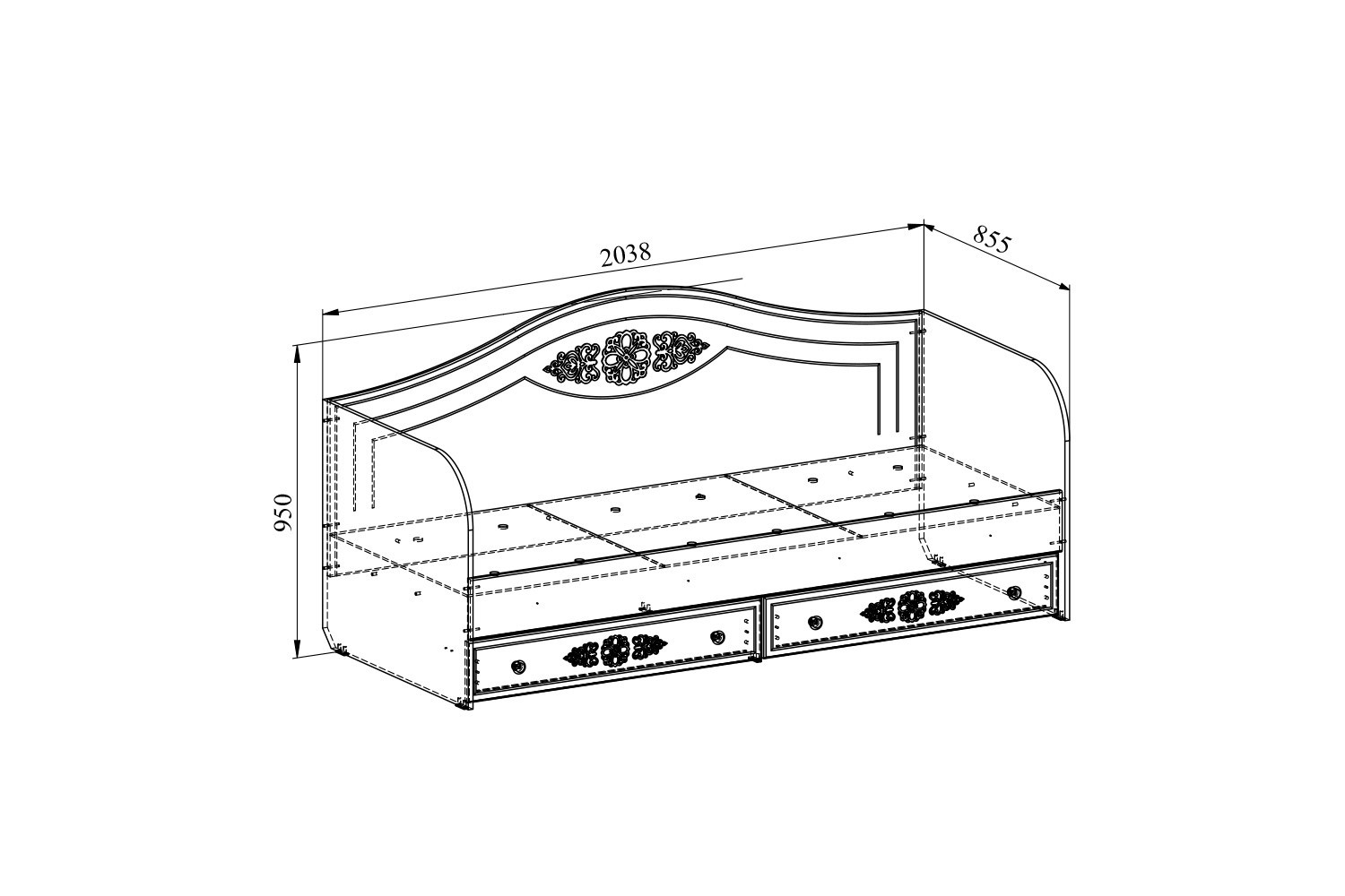 Особенности: 2 выдвижных ящика для размещения постельного белья