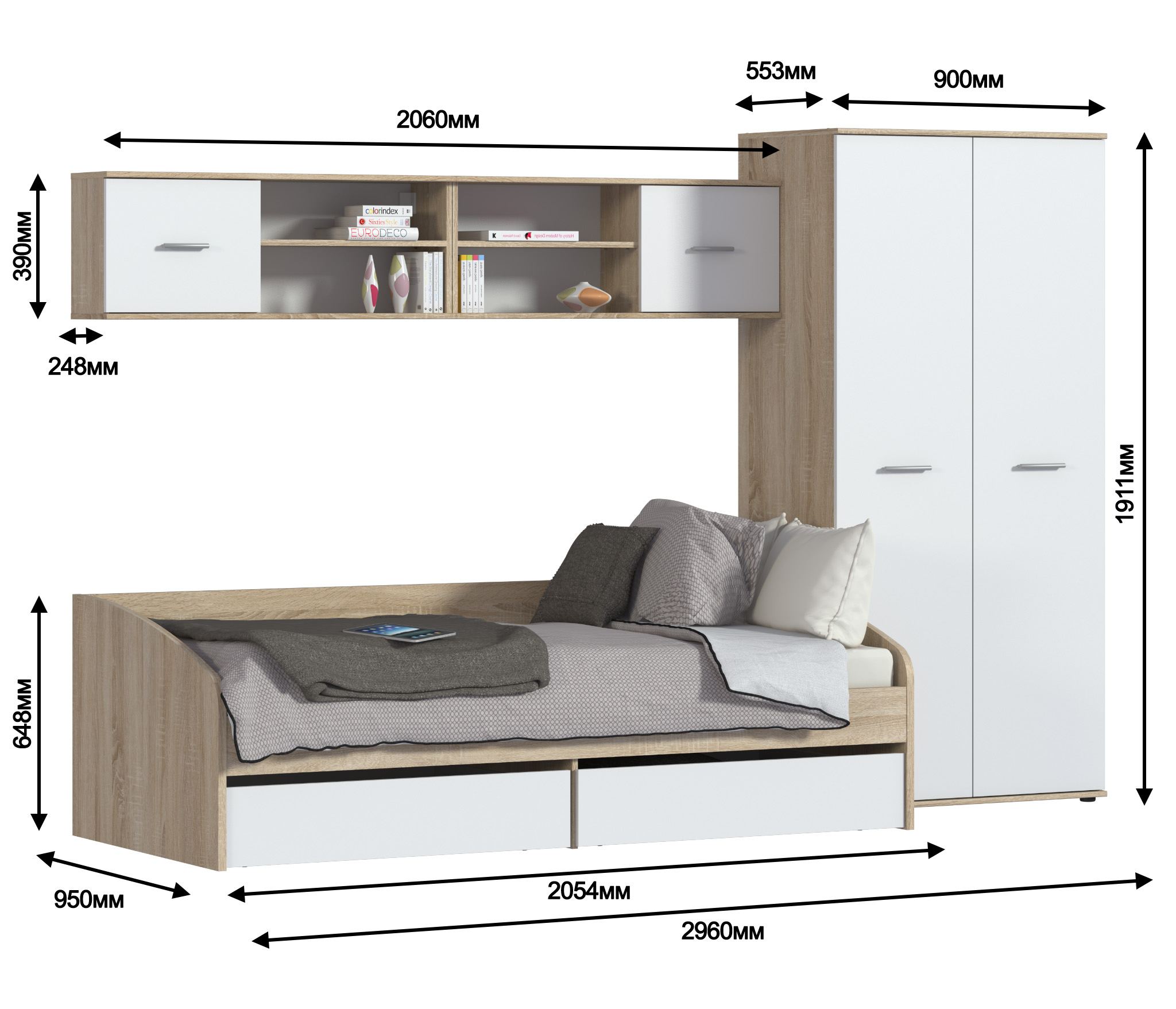 Мамбо СБ-2368 Полка навесная Дуб Сонома/БелыйМамбо СБ-2371 Шкаф 2 дверный Дуб Сонома/Белый