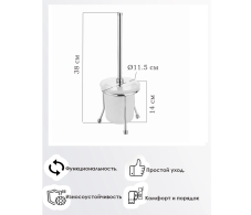 Ершик туалетный, напольный, не занимает много места, очень удобный в использовании. Ершик для унитаза незаменимый помощник для поддержания чистоты туалета. Аксессуар выполнен в классическом стиле, отлично подойдет для туалетной комнаты и дополнит Ваш интерьер. Гигиеничность, экономия места и удобство использования. Изделие монтируется к стене при помощи надежного крепежа.