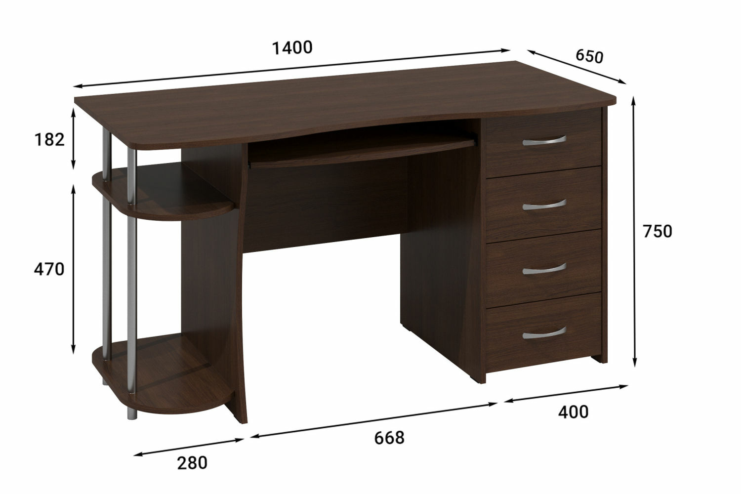 Материал корпуса/фасада: ЛДСП 16 мм.Размеры модуля (ш/г/в) в мм:1400х650х750.