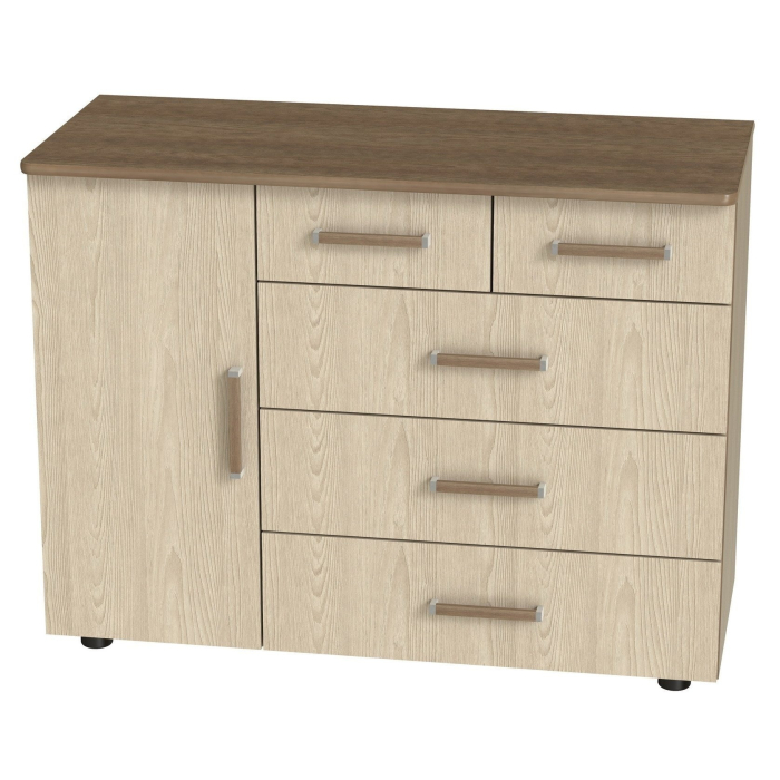 Гамаюн М-7 отличается большими размерами и многофункциональностью.3 больших+2 маленьких выдвижных ящика,позволят разместить множество вещей.Дверь,скрывающая полку,позволяет разместить более крупные вещи.Корпус и фасады из высококачественного ЛДСП..Производитель сохраняет за собой право менять фурнитуру.