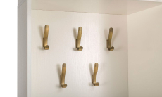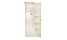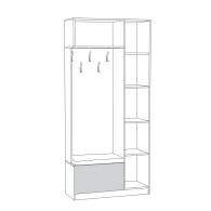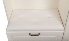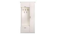 Ливерпуль 13.21 Изысканный шкаф в колониальном стиле преобразит прихожую и подарит ей уникальное сочетание европейского комфорта и восточного колорита. Конструкция состоит из открытой ниши с крючками для верхней одежды, закрытого вертикального блока с полками и двух ящиков для хранения необходимых предметов. Верхний ящик оснащен откидной дверцей, а нижний имеет выдвижной механизм. Поверхность нижнего ящика оборудована мягким элементом, на который можно присесть для переобувания.
