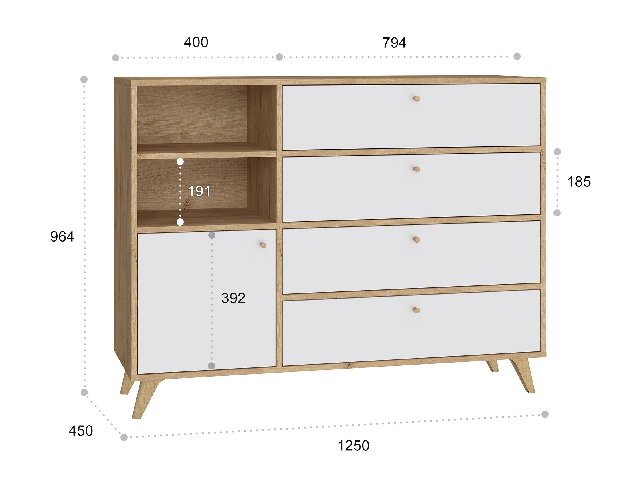 Габаритные размеры ВхШхГ 964x1250x450 мм.