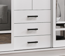 Содержит отдел с антресольной полкой и штангой для вешалок, отдел с полками, два выдвижных ящика и отдел с двумя штангами для вешалок. Зеркала входят в комплект. Материал ЛДСП, кромка ПВХ, зеркало