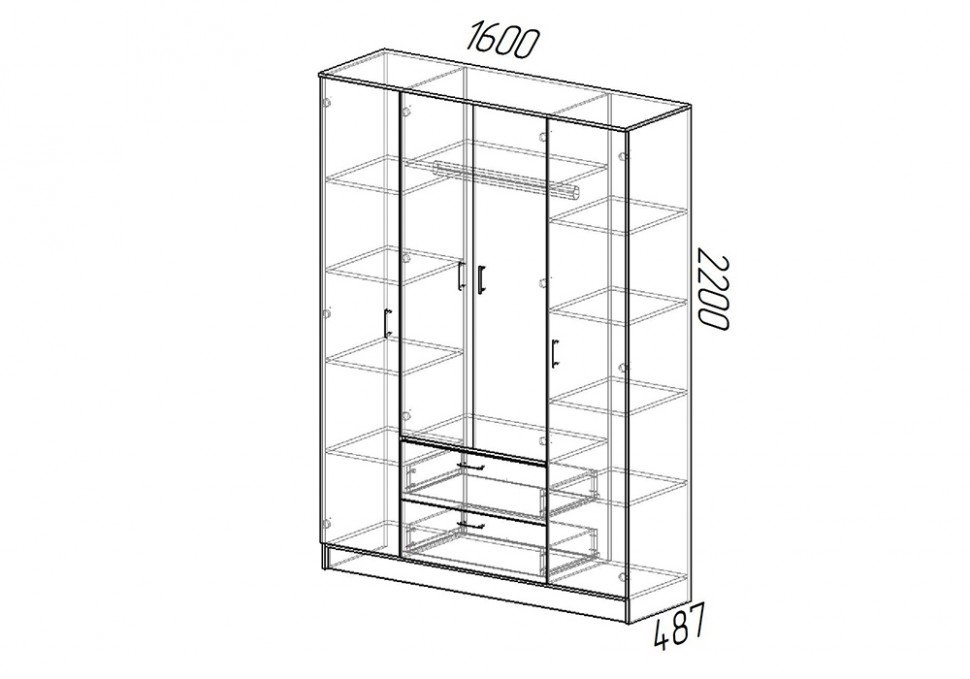 Размеры: 2200 × 1600 × 487 мм
