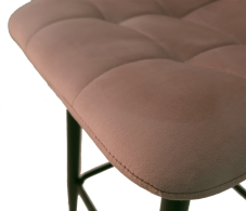 Барный стул станет органичным дополнением к кухонной стойке или высокому кухонному острову. Металлический каркас обладает высоким запасом прочности. Перекладина, соединяющая ножки, обеспечивает опору для ног. Сиденье и спинка изготовлены из фанеры с мягким слоем пенополиуретана, обиты бархатом, который чрезвычайно приятен на ощуп, устойчив к механическим повреждениям и легко очищается от грязи. Тонкая декоративная строчка делает модель еще более элегантной. Размер: 440*550*860мм.