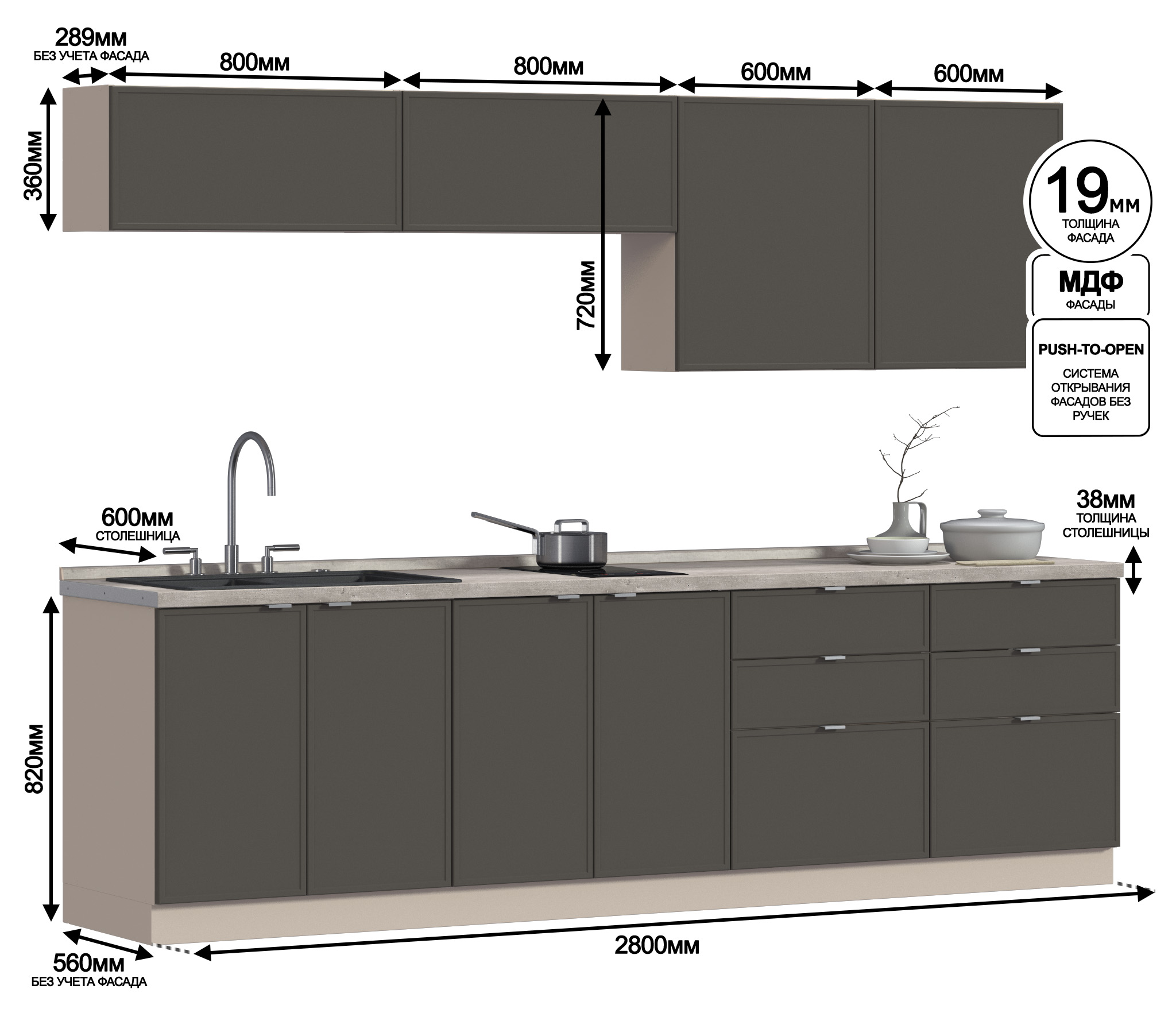 Отзывы о Столплит Кухонный гарнитур Регина Квадро Песочный / Базальт 2,8 м