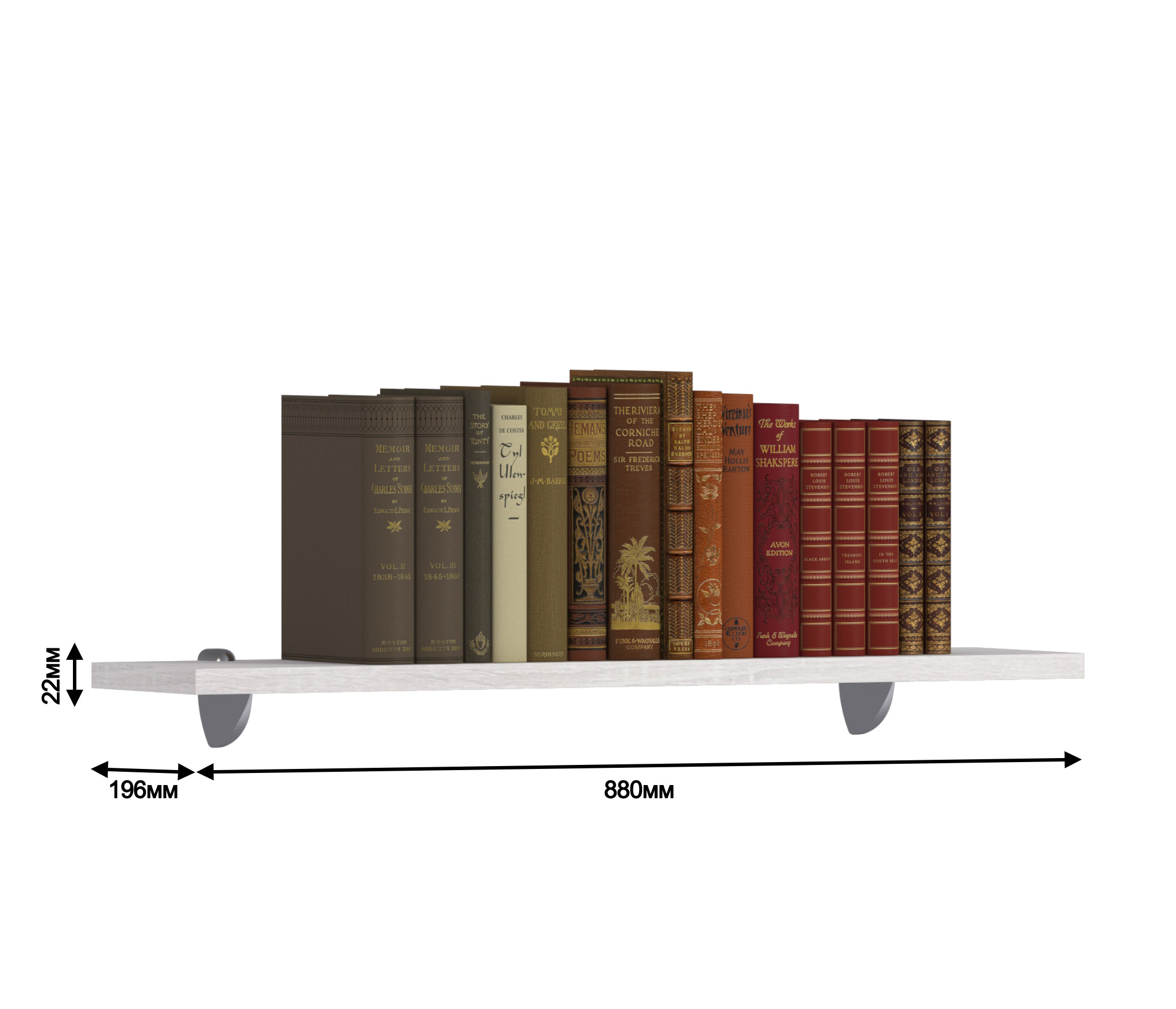 Габаритные размеры – ширина 88 см, высота 2 см и глубина 19 см. Выполнена полка из прочного современного КДСП. Цвет отделки – «Дуб Сонома белый». Полка крепится к стене при помощи дюбелей, которые входят в комплект.