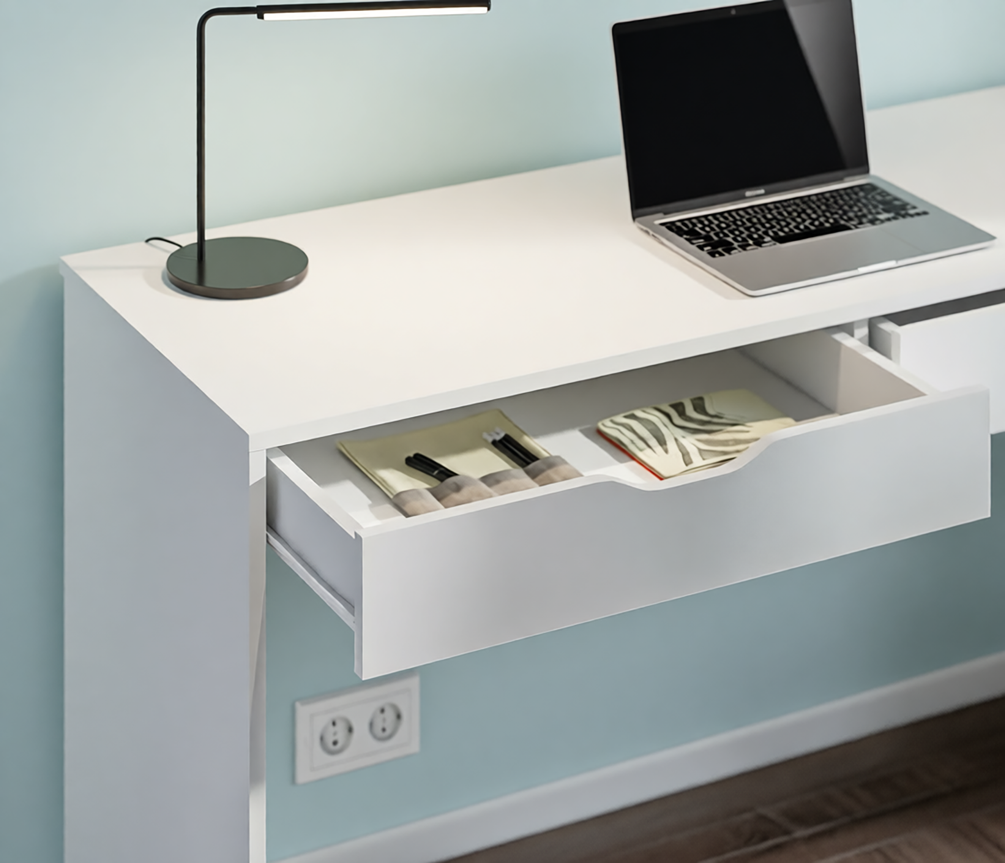 Минималистичный декор, отсутствие ручек и нейтральный цвет стола позволят разместить его в любой интерьер. Также вы можете дополнить письменный стол Бруклин комодами одноименной коллекции.