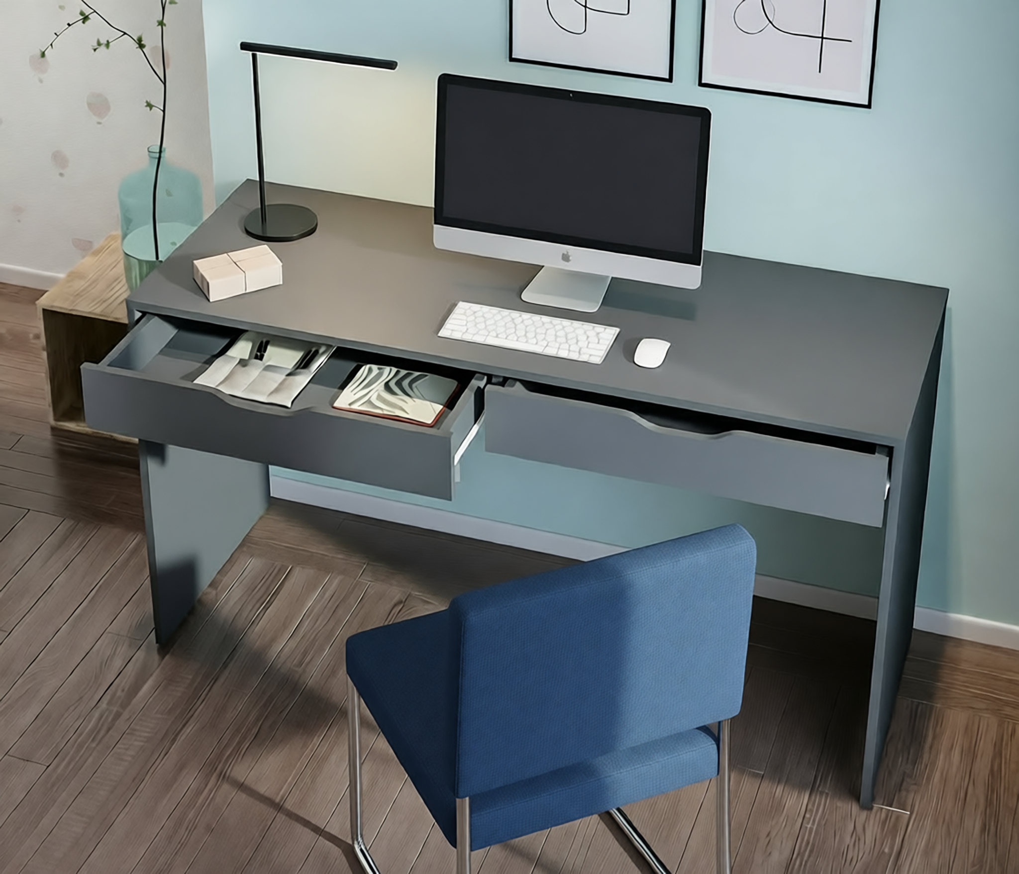 Минималистичный декор, отсутствие ручек и нейтральный цвет стола позволят разместить его в любой интерьер. Также вы можете дополнить письменный стол Бруклин комодами одноименной коллекции.