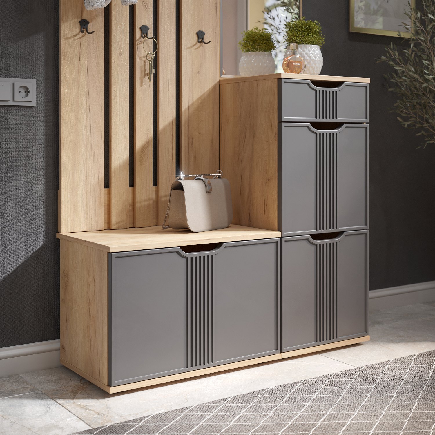 Тумба Эмилия ЭЛ-4 изготовлена из ЛДСП 16 мм, фасады МДФ. Тумба оснащена одним выдвижным ящиком, за дверьми расположены три полки для размещения обуви и других вещей. Сочетая тумбу с другими модулями из коллекции Эмилия, Вы можете создать стильную и лаконичную прихожую у себя дома.