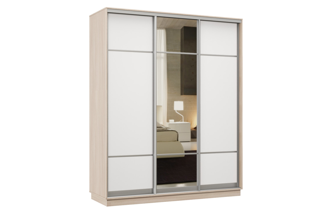 Шкаф-купе Премьер Лайт 35 (08;11;08) трехдверный (Ясень шимо светлый / Белый глянец)