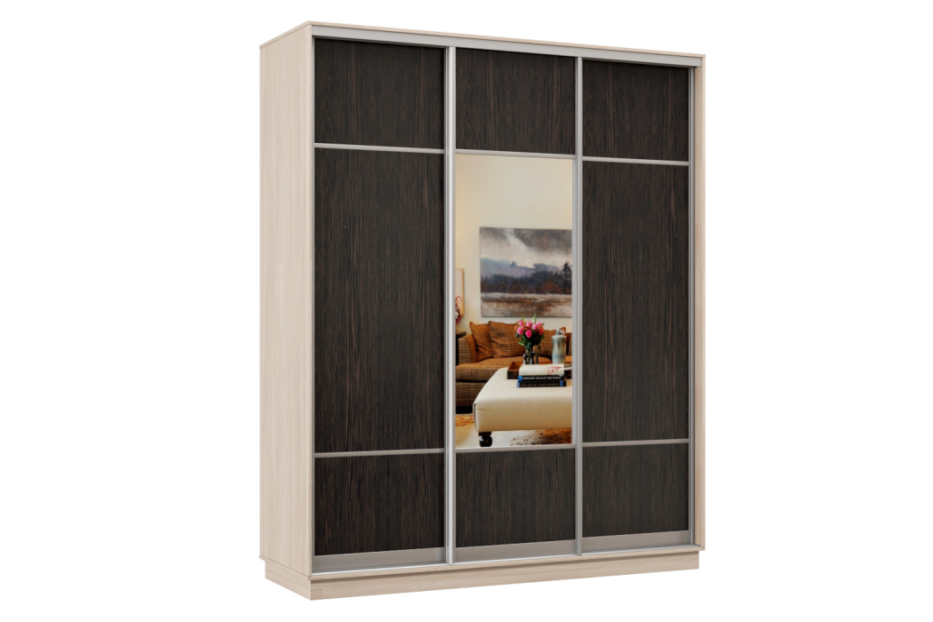 Шкаф-купе Премьер Лайт 33 (08;05;08) трехдверный (Ясень шимо светлый/Венге)