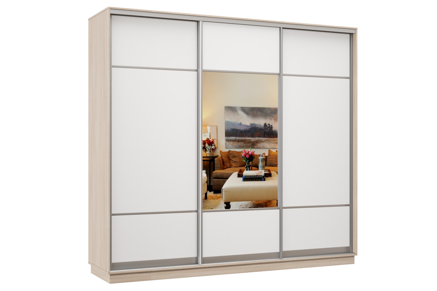Шкаф-купе Премьер Лайт 59 (08;05;08) трехдверный (Ясень шимо светлый / Белый глянец) Код I0000314961