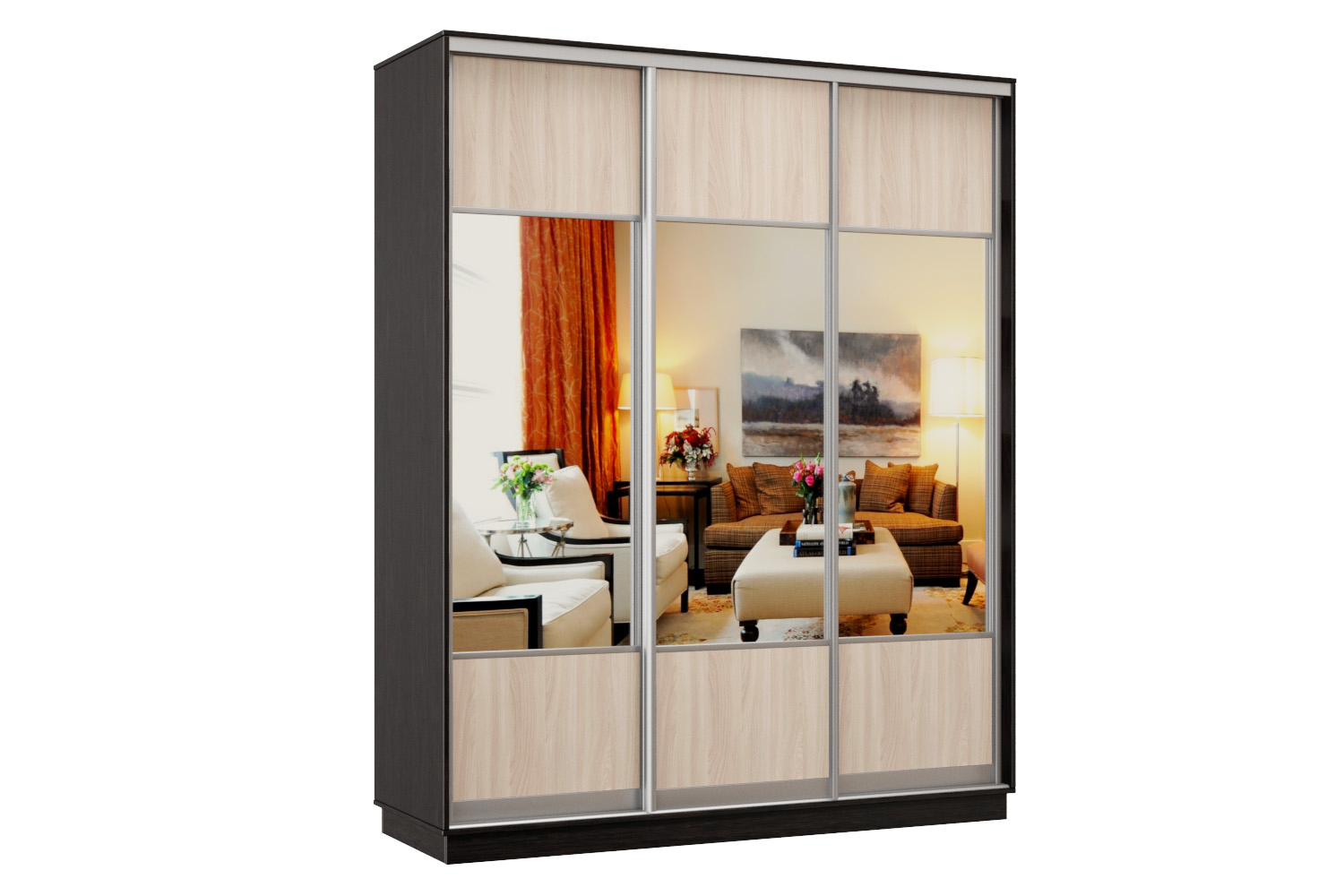 Шкаф-купе Премьер Лайт 33 (05;05;05) трехдверный (Венге/Ясень шимо светлый) Код I0000315083