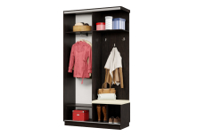 В прихожей используется одна дверь, которая перемещается по однополосному треку вправо или влево, закрывая или открывая каждую из двух частей шкафа.