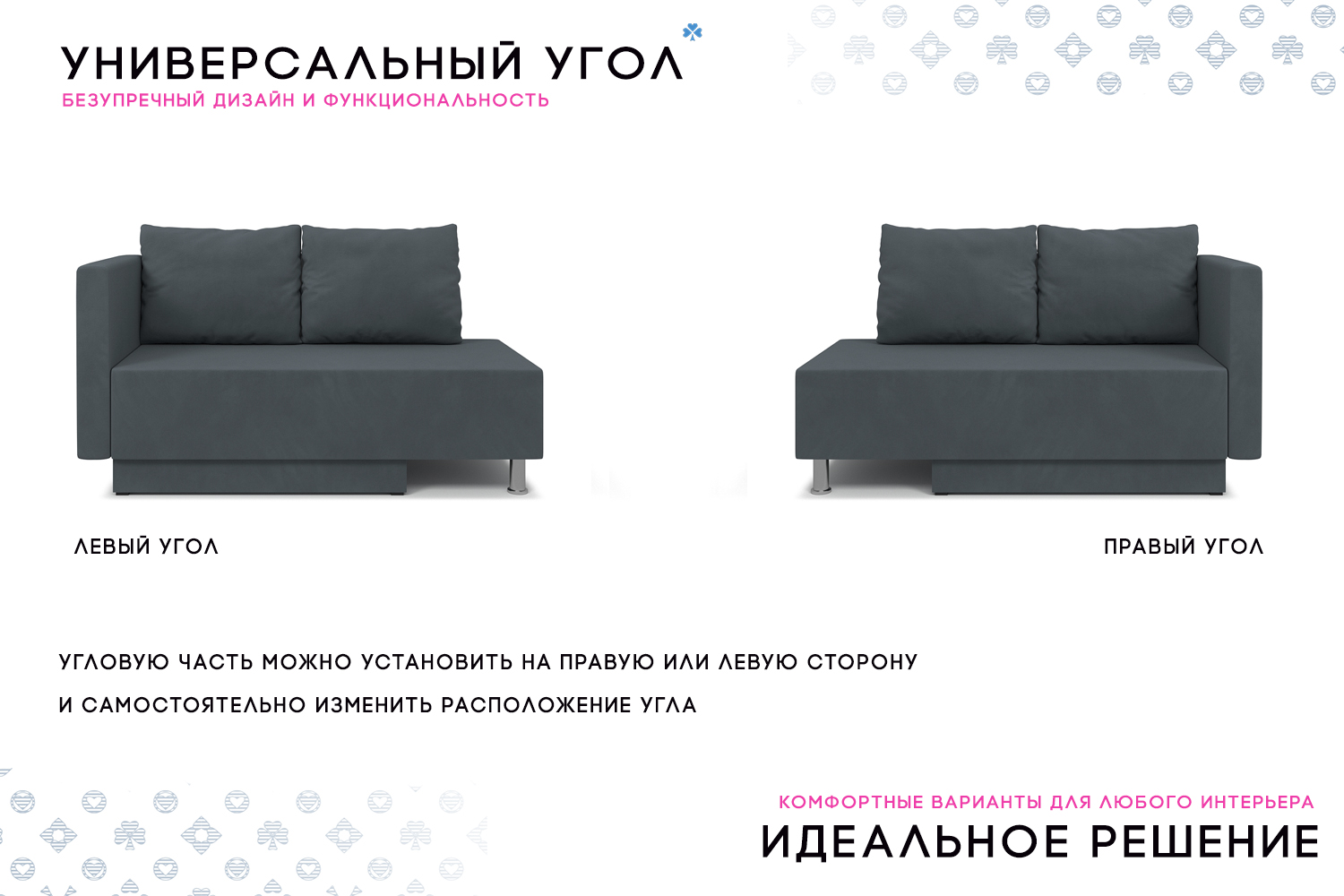 •с одним подлокотником: диван выглядит оригинально, образуя уютную зону для отдыха;
