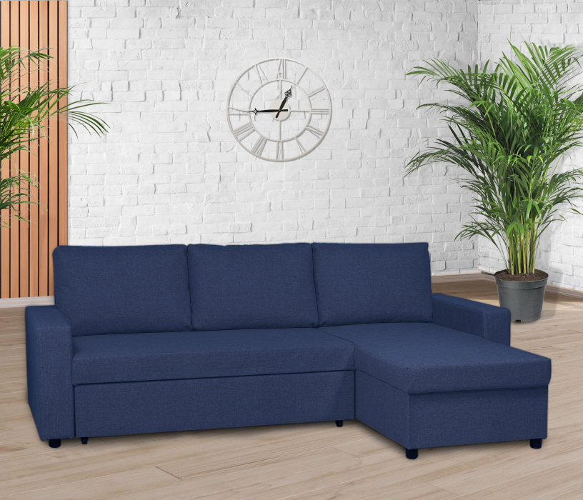 Угловой диван-кровать Турин, рогожка (Синий)