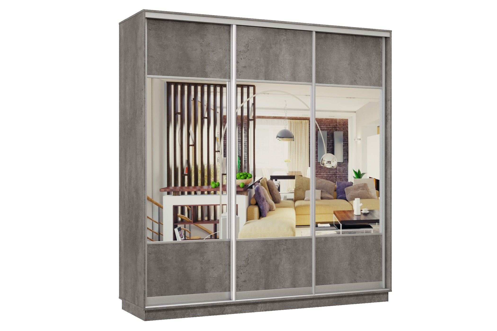 Шкаф-купе Премьер Лайт 36 (05;05;05) трехдверный (Бетон) Код I0000330399