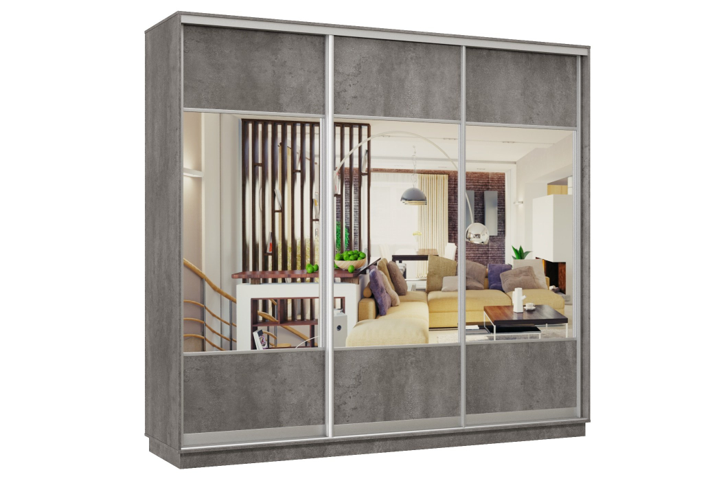 Шкаф-купе Премьер Лайт 59 (05;05;05) трехдверный (Бетон)