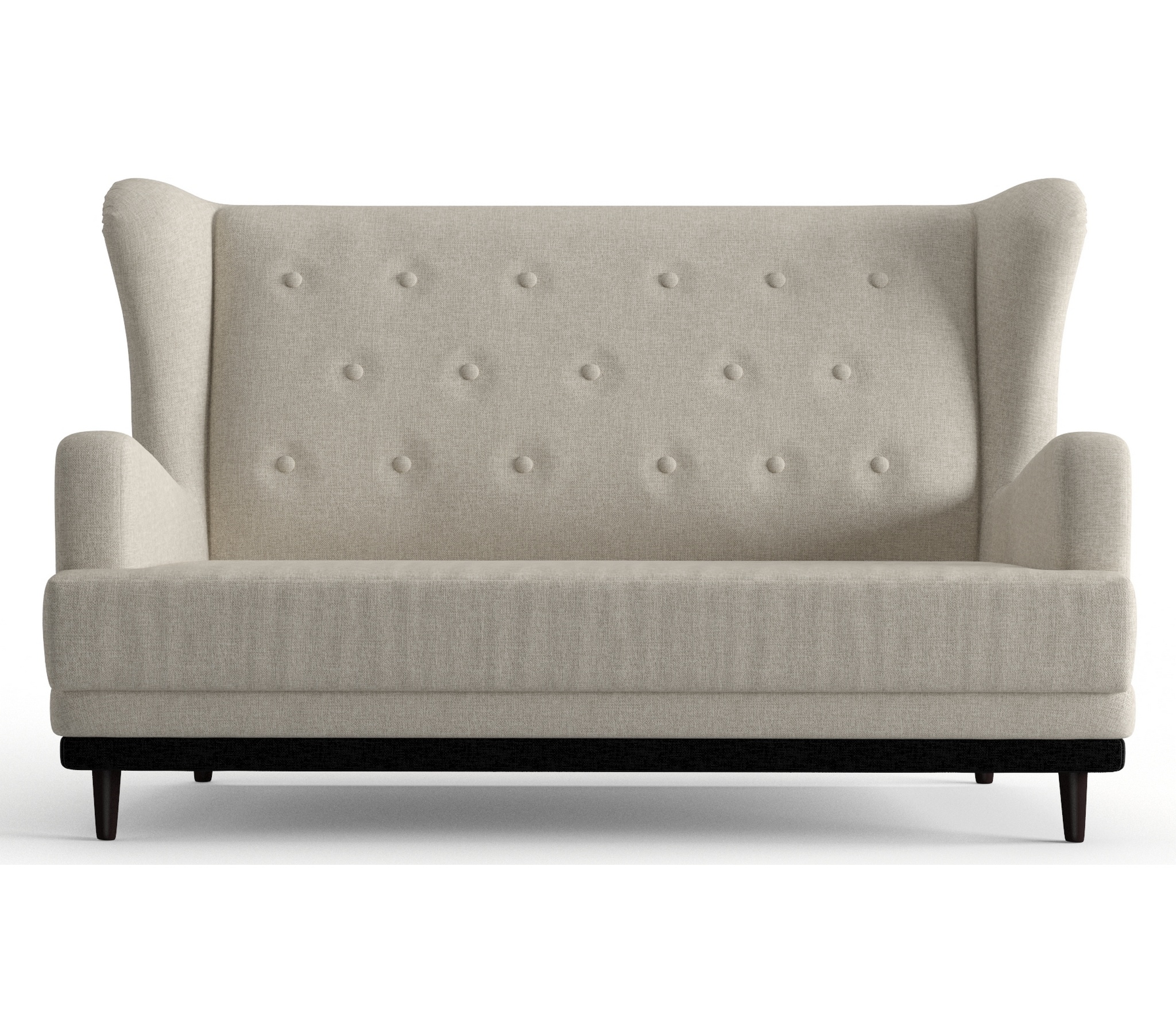Практичный диван Барон обладает особенной конструкцией и компактными размерами ширина 145 см высота 92 см глубина 90 см . Его главное отличие ""уши""- расположенные по бокам спинки дивана, глубокое сиденье 60 см для удобства, высокая спинка, устойчивые деревянные ножки и прочный каркас. Красиво сдекорированная пуговками спинка дивана задаёт эстетику и элегантность. Диван Барон с пружинной змейкой надолго сохраняет свою форму и не продавливается, а ППУ (пенополиуретан) добавляет мягкости и комфорта. Пенополиуретан практичен и способен прослужить в течение многих лет, кроме того, такой материал безопасен и экологичен. ППУ пропускает воздух, поэтому гигиеничен. На диван легко сесть, и с комфортом проводить время.