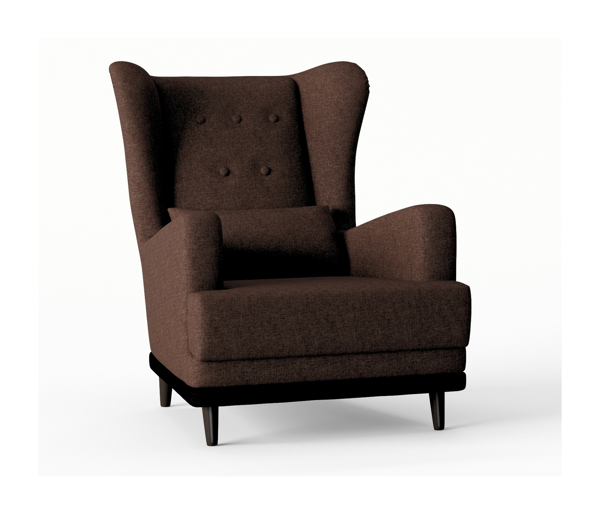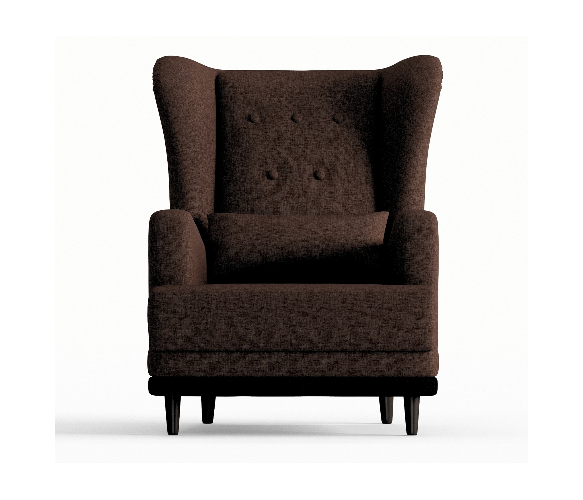 Практичное кресло Барон обладает особенной конструкцией. Его главное отличие ""уши""- расположенные по бокам спинки кресла , глубокое сиденье 60 см для удобства, высокая спинка, устойчивые деревянные ножки и прочный каркас. Красиво сдекорированная пуговками спинка кресла Барон задаёт эстетику и элегантность. На кресло легко сесть, и с комфортом проводить время. Наполнитель кресла ППУ (пенополиуретан) добавляет мягкости и комфорта. Пенополиуретан практичен и способен прослужить в течение многих лет, кроме того, такой материал безопасен и экологичен. ППУ пропускает воздух, поэтому гигиеничен.
