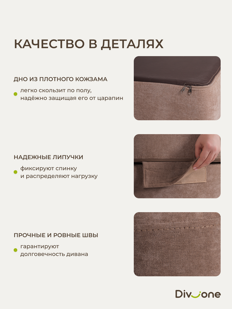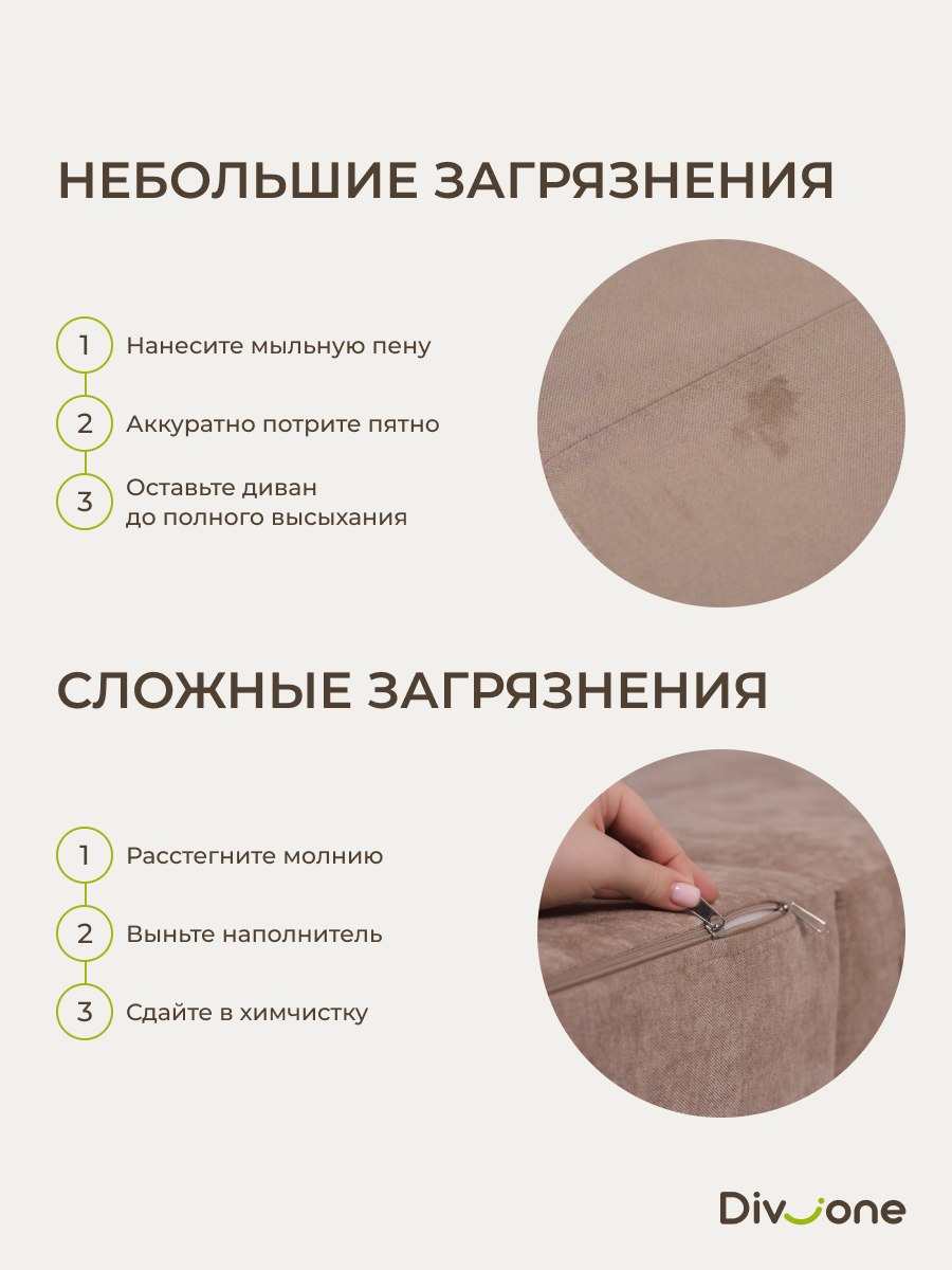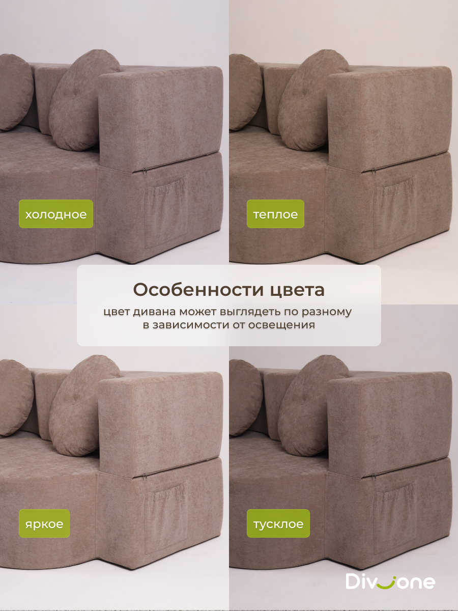 Наши бескаркасные диваны для городской квартиры и загородной дачи изготовлены из материалов высокого качества. Основа выполнена из гипоаллергененного ППУ (Пенополиуретан) толщиной 40 сантиметров, что обеспечивает упругость. Велюр имеет износостойкость — 50 000 циклов по тесту Мартиндейла, что более чем вдвое превышает стандартные требования. Обивка выполнена из качественных материалов, которые легко чистятся и не выцветают со временем. Наполнение декоративых подушек представляет собой смесь упругой поролоновой крошки и воздушного синтепуха. Такой состав препятствует быстрой усадке, эффективно поддерживает первозданную форму изделия и продлевает его срок службы на долгие годы. Таким образом, долговечность и сохранение превосходного внешнего вида гарантированы. Диванчик отлично подходит для сна благодаря своему ортопедическому эффекту.