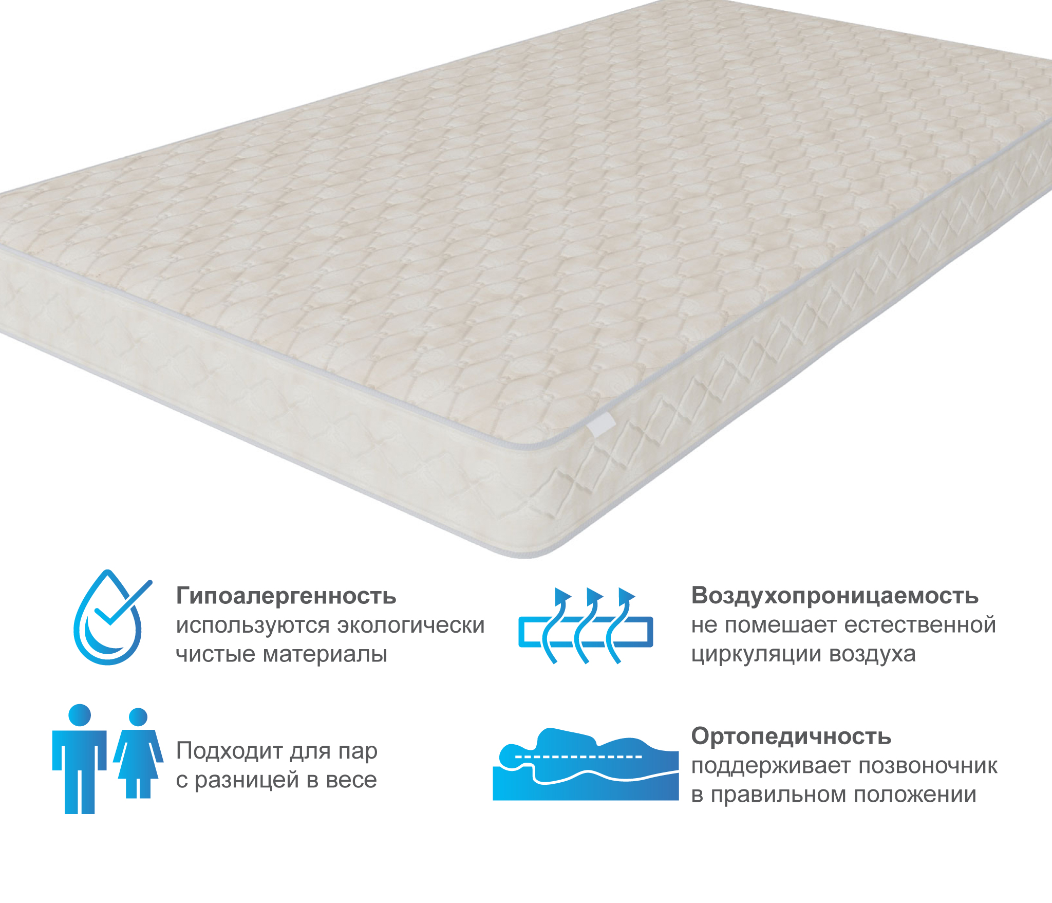 Просыпаетесь уже уставшим? До зари считаете овец? Пружинный матрас Престиж-Монпелье 1200*1900 решит все ваши проблемы со сном. Кокосовая койра на основе боннельного блока гарантирует телу необходимую поддержку, не допуская неправильных изгибов позвоночника и перенапряжения мышц. Организм получает возможность полностью восстановиться за ночь и как результат – солнечное настроение даже пасмурным утром.