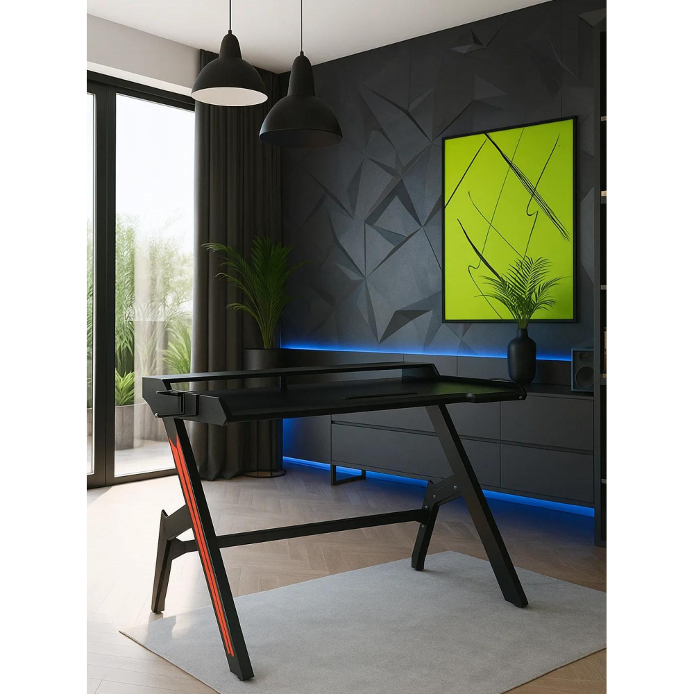 Стол оснащен подстаканником и крючком для наушников.