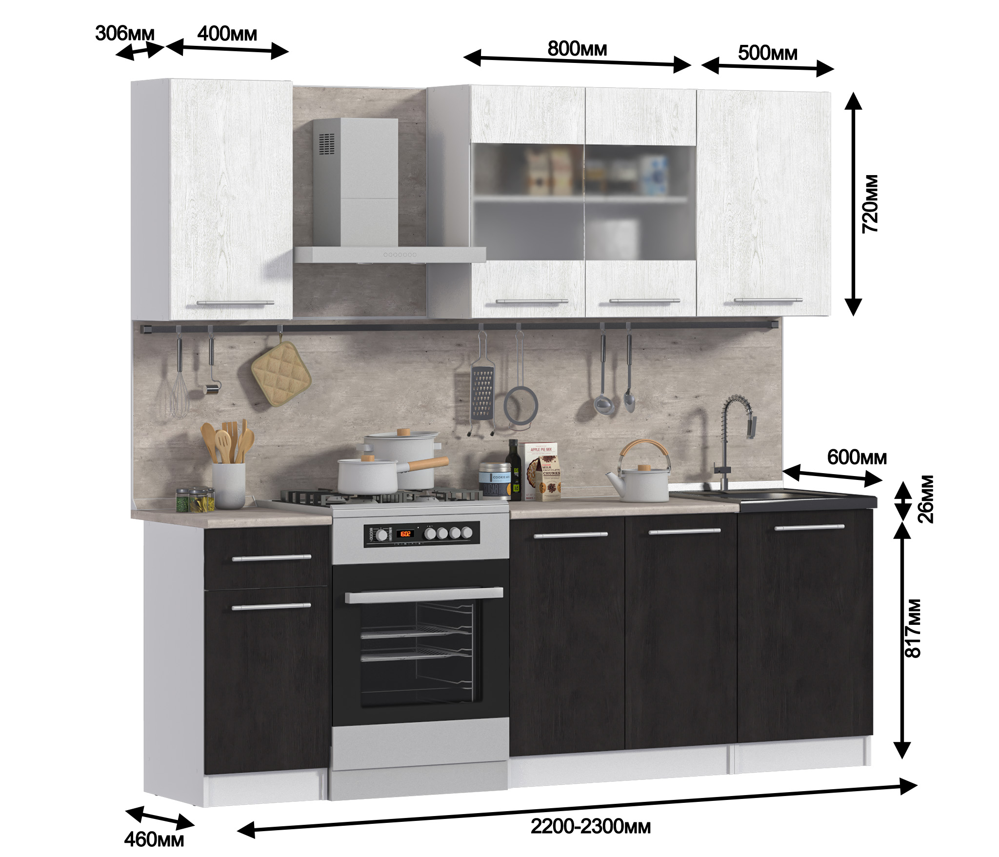 Размер всего гарнитура - 2300 мм