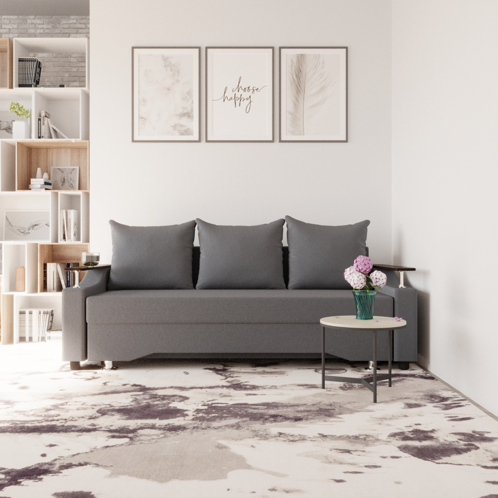Достоинства: ровное спальное место, лёгкость процесса трансформации дивана, ёмкий бельевой ящик, прочность механизма, долговечность конструкции.