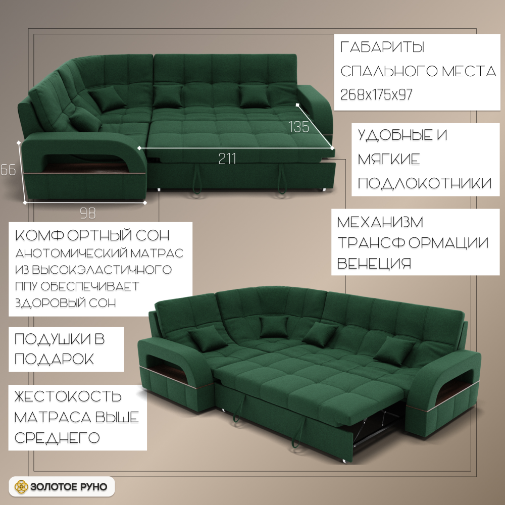 Отзывы о Столплит Угловой диван Майами-3 ППУ, велюр Зеленый