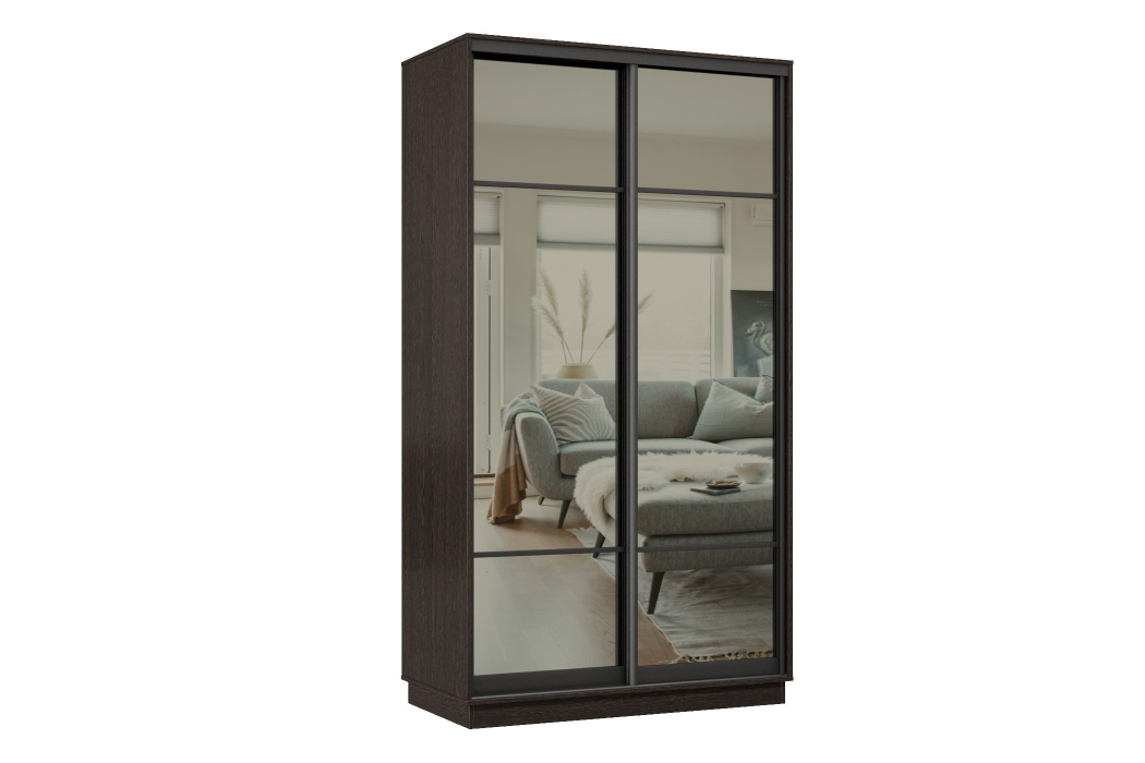 Шкаф-купе Премьер 03 (11ЗГ;11ЗГ) фасады зеркало графит/двухдверный/Профиль чёрный муар (Венге)