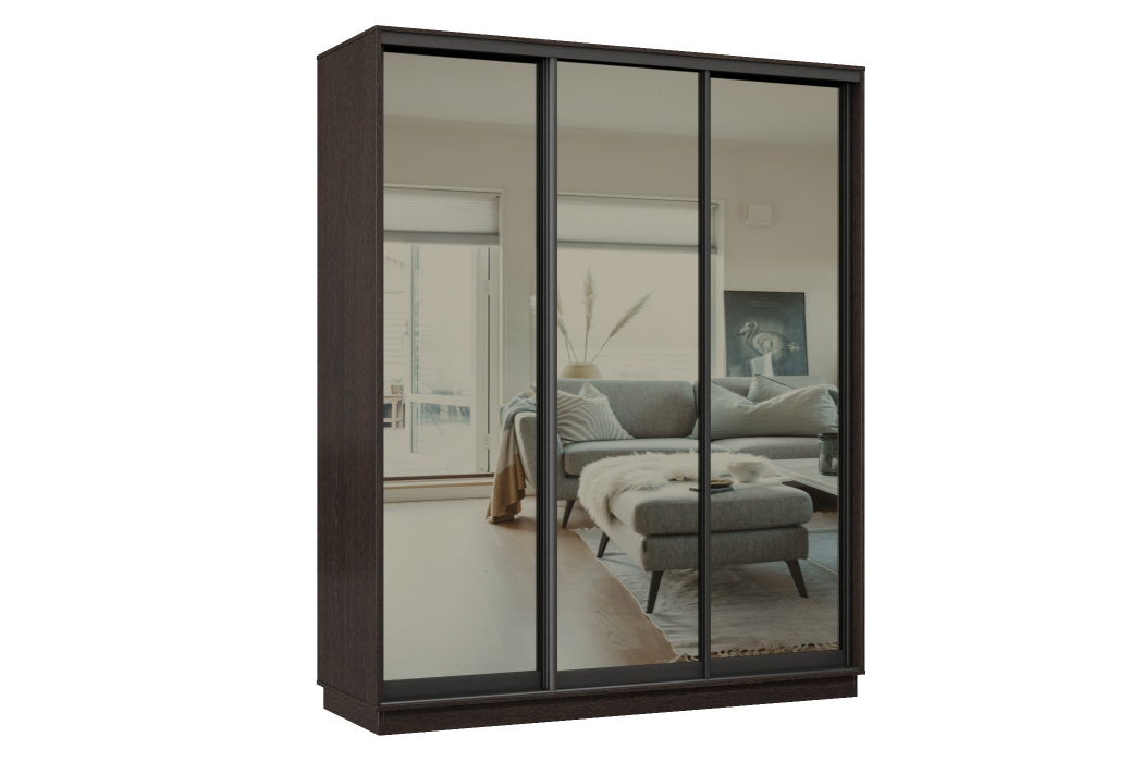 Отзывы о Столплит Шкаф-купе Премьер 24 (01ЗГ;01ЗГ;01ЗГ) фасады зеркало графит/трёхдверный/Профиль чёрный муар Венге