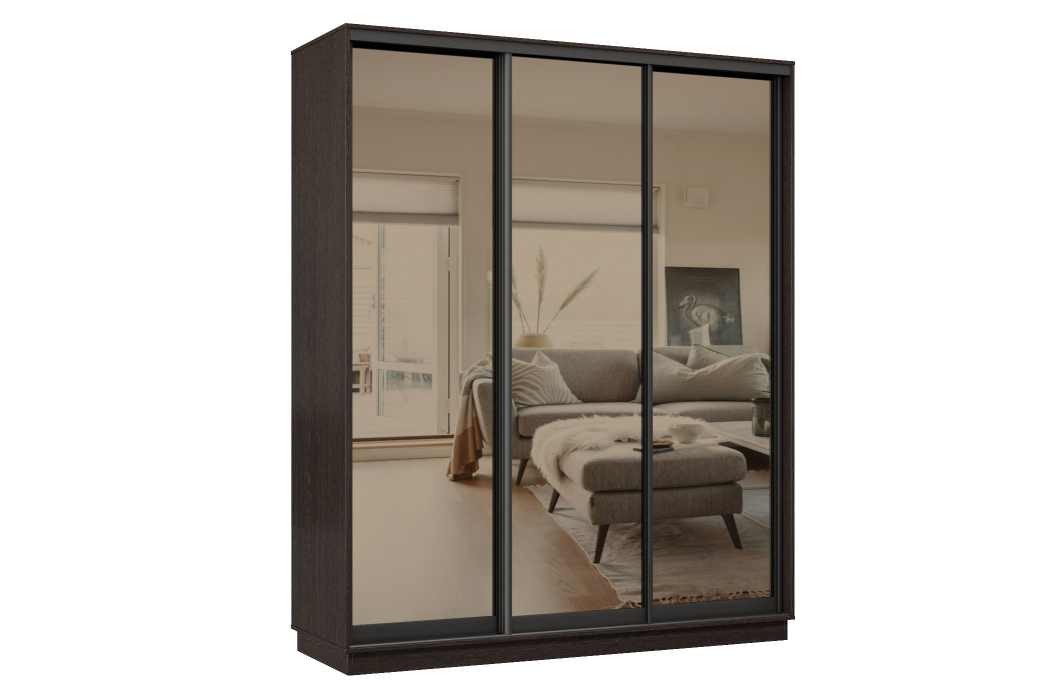 Шкаф-купе Премьер 24 (01ЗБ;01ЗБ;01ЗБ) фасады зеркало бронза/трёхдверный/Профиль чёрный муар (Венге) Код I0000374304