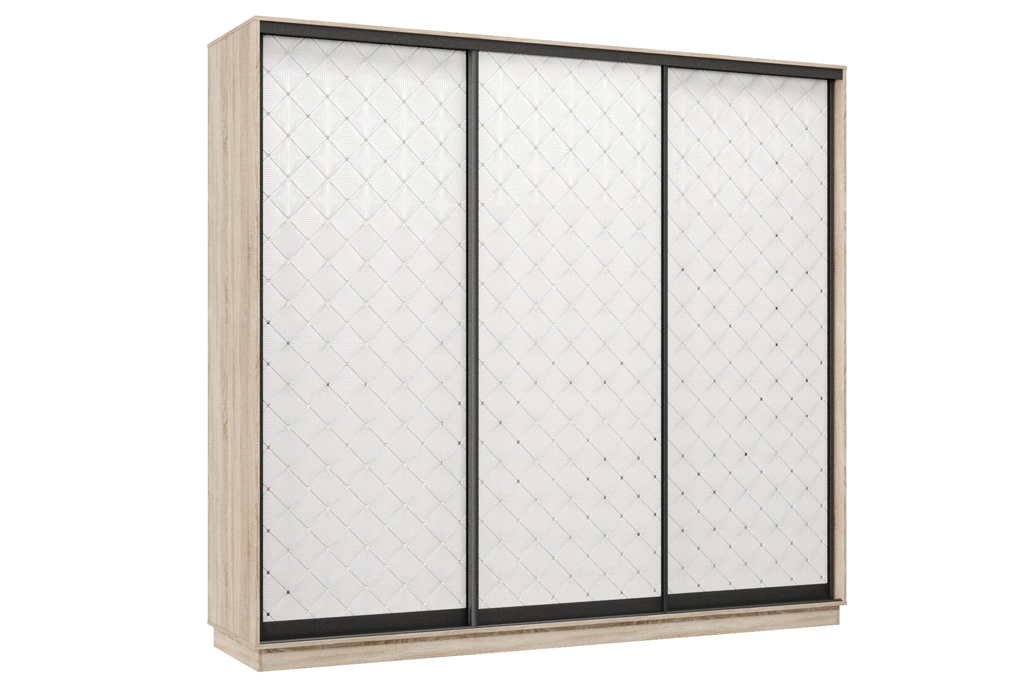 Шкаф-купе Премьер 59 (01РБ;01РБ;01РБ) фасады ромб белый/трёхдверный/Профиль чёрный муар (Дуб сонома) Код I0000374621