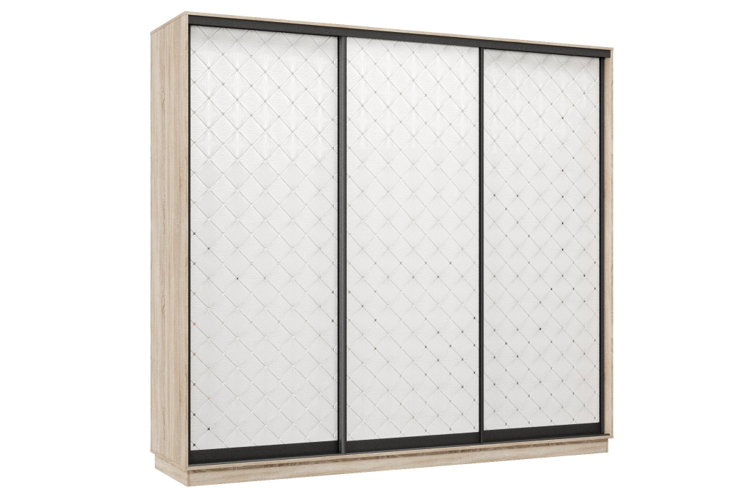 Отзывы о Столплит Шкаф-купе Премьер 59 (01РБ;01РБ;01РБ) фасады ромб белый/трёхдверный/Профиль чёрный муар Дуб сонома