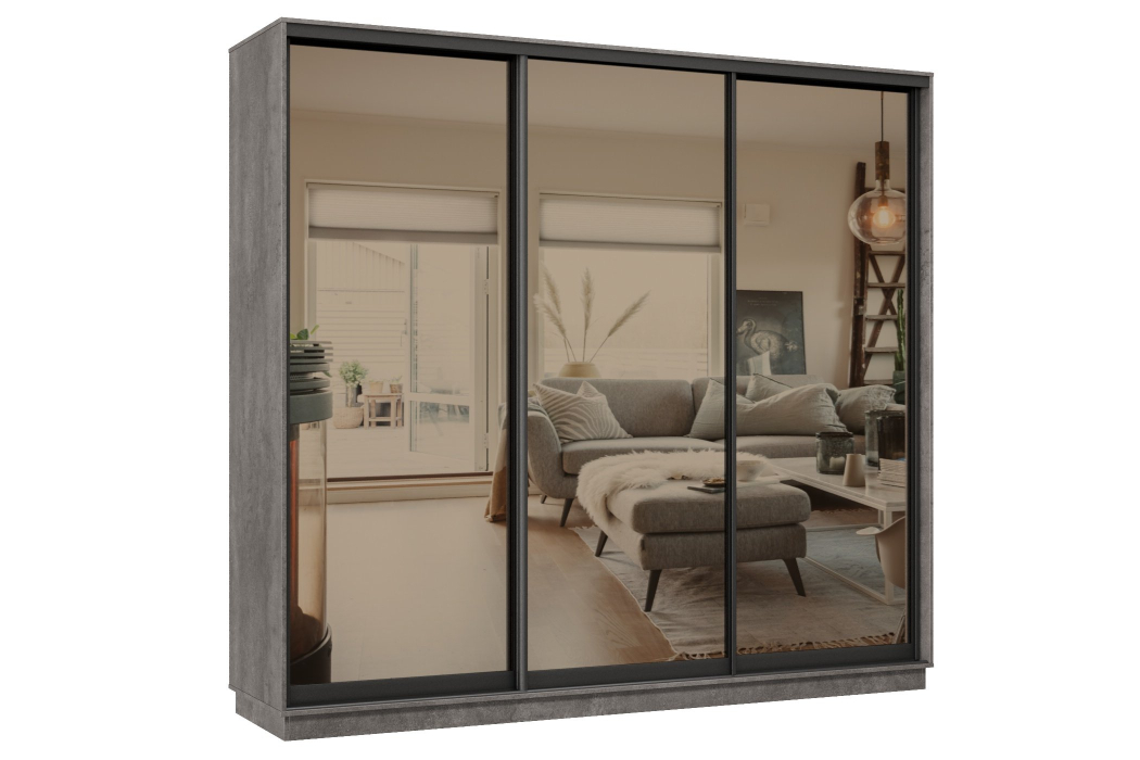 Отзывы о Столплит Шкаф-купе Премьер 60 (01ЗБ;01ЗБ;01ЗБ) фасады зеркало бронза/трёхдверный/Профиль чёрный муар Бетон