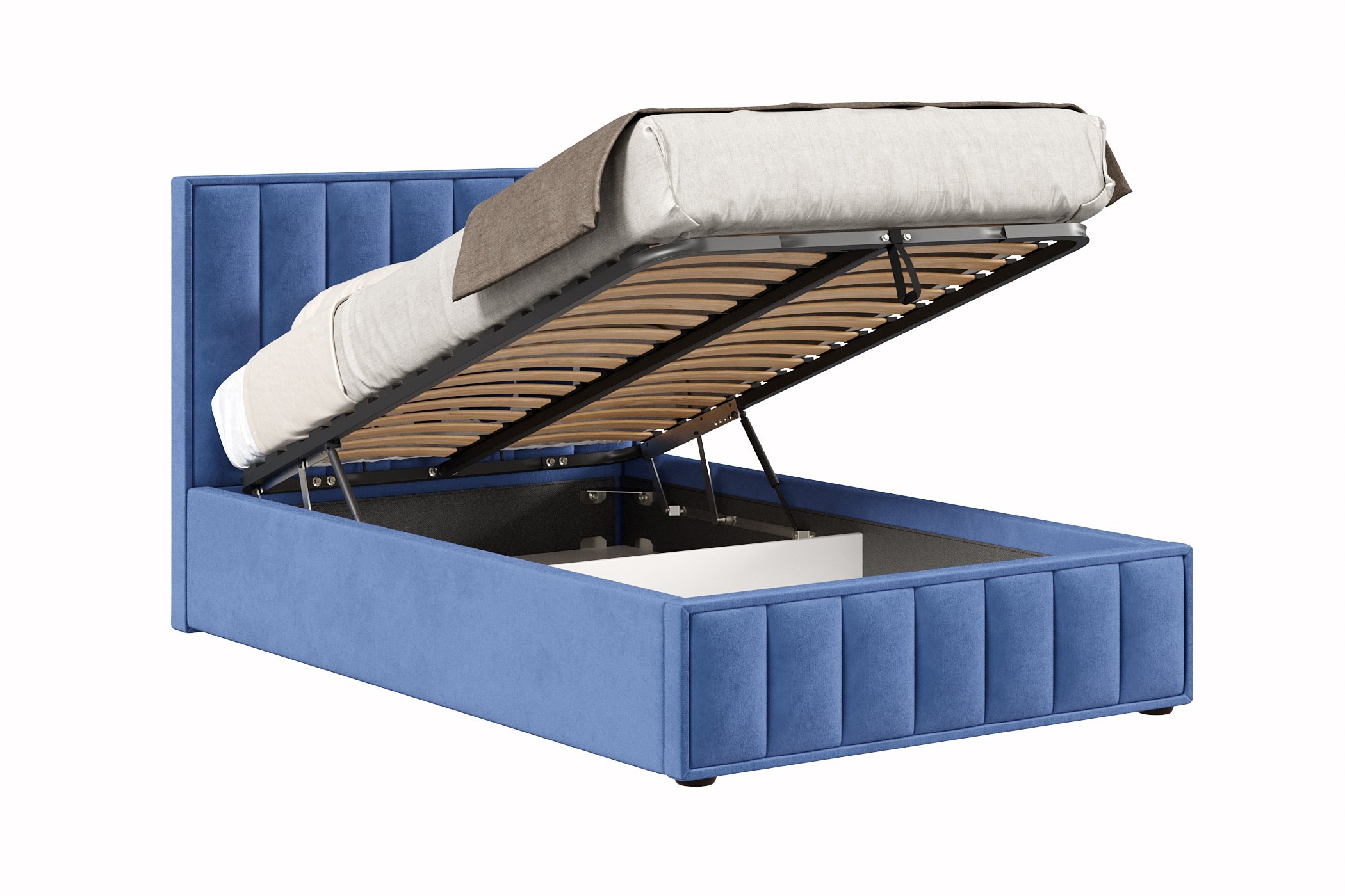 Кровать Анкона 1200 с подъёмным механизмом, велюр (Синий)