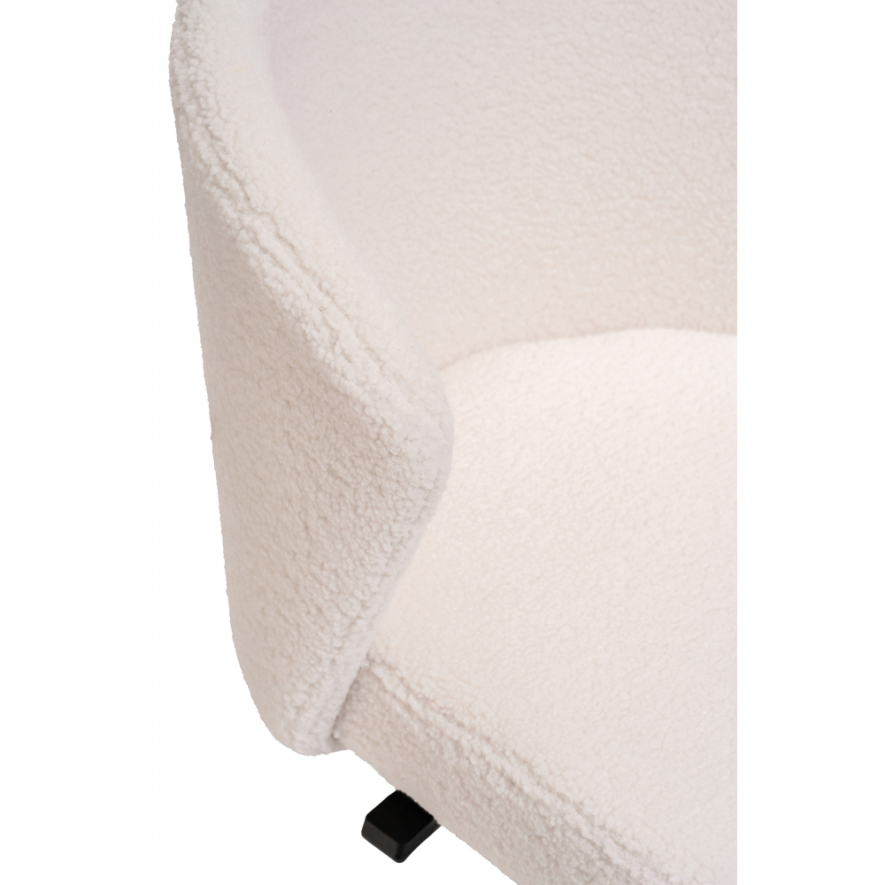Стул Lika white teddy имеет плотную ткань букле, приятный на ощупь, повышенная износостойкость. Металлическая крестовина рассчитанная до 130кг. Прорезиненные колёса берегут покрытие. Тихое передвижение по полу