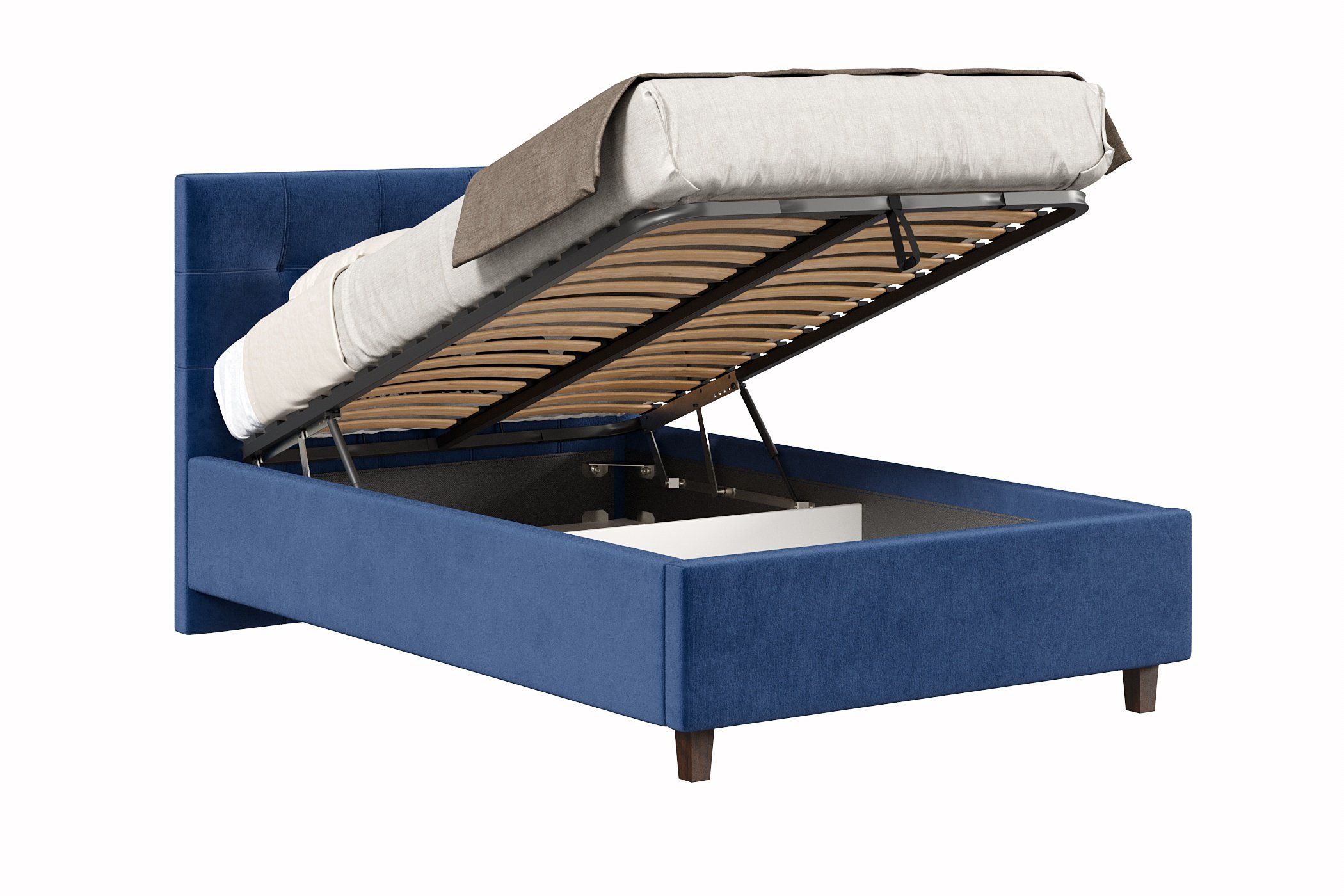 Кровать имеет нишу для хранения разных вещей, это очень удобно, если пространство в комнате не дает возможность поставить дополнительные шкафчики, либо полки.