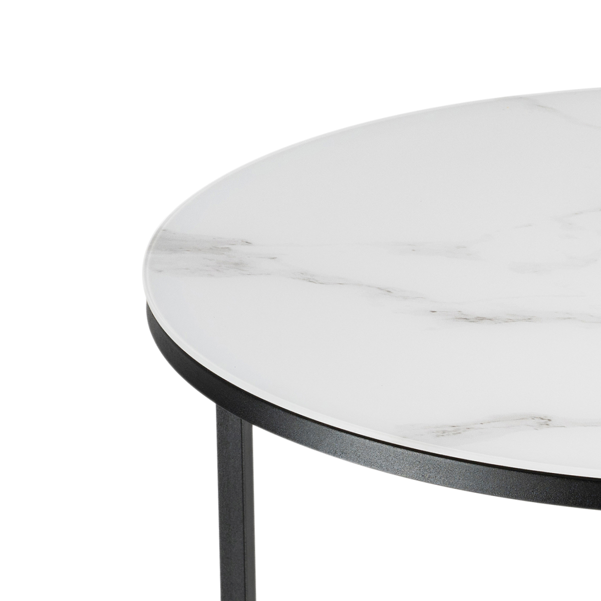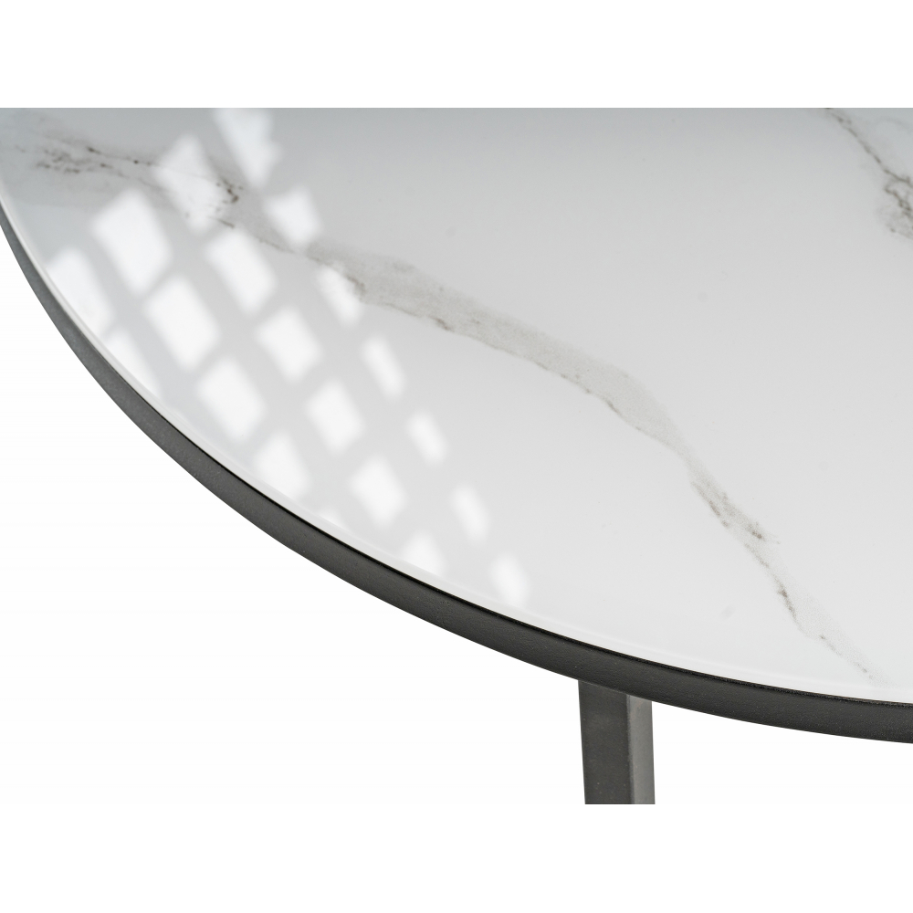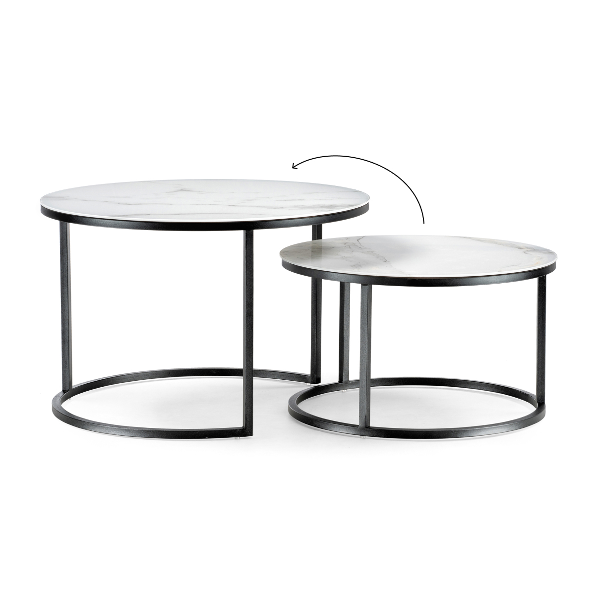 Журнальный стол Плумерия белый мрамор / черный; Металл. Экономия места - столики можно задвинуть один под другой. Толщина закалённого стекла - 4мм, под стеклом ЛДСП - 16мм.