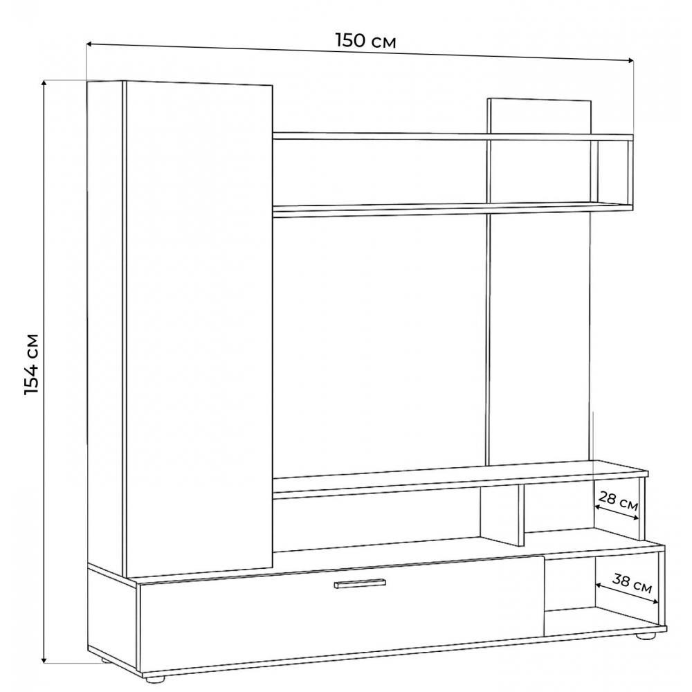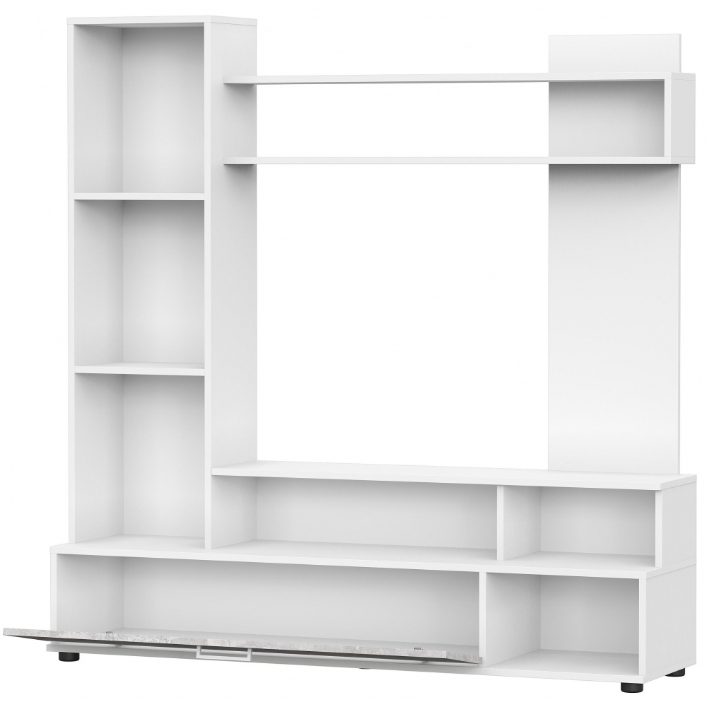 Под нишей расположен 1 закрытый ящик и 3 открытые полки, которые могут стать идеальным местом для хранения вашей коллекции DVD, игр, журналов и других вещей.