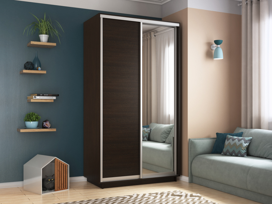 Шкаф-купе Экспресс Хит 2х дверный ДСП/Зеркало 120х60х220 (Венге)