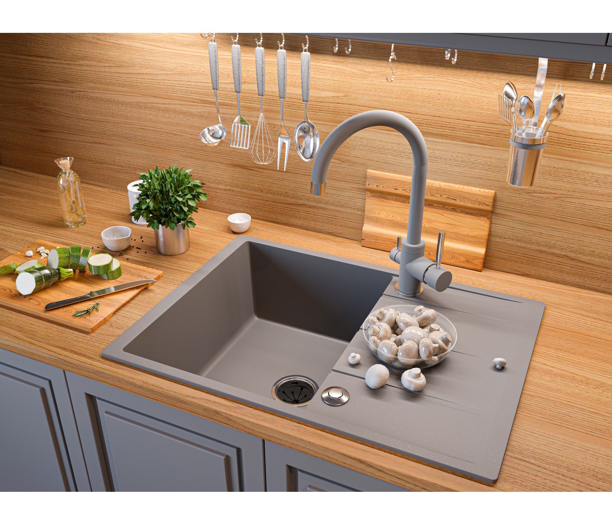 Кухонные мойки EMAR QUARTZ на 78% состоят из измельченного кварца различных фракций и 22% связующих полиэфирных смол. Дополнительные связующие компоненты образуют антибактериальную защиту. Бесшумные, практичны в уходе и удобны в эксплуатации.