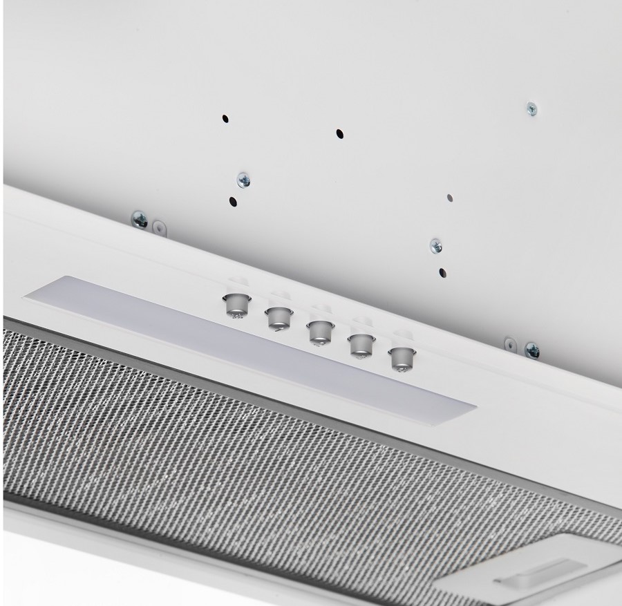 • Фасад вытяжки полностью закрывает нижнюю полку – это позволяет монтировать вытяжку в кухонные шкафчики вместо нижней полки (дна). Удобная система монтажа