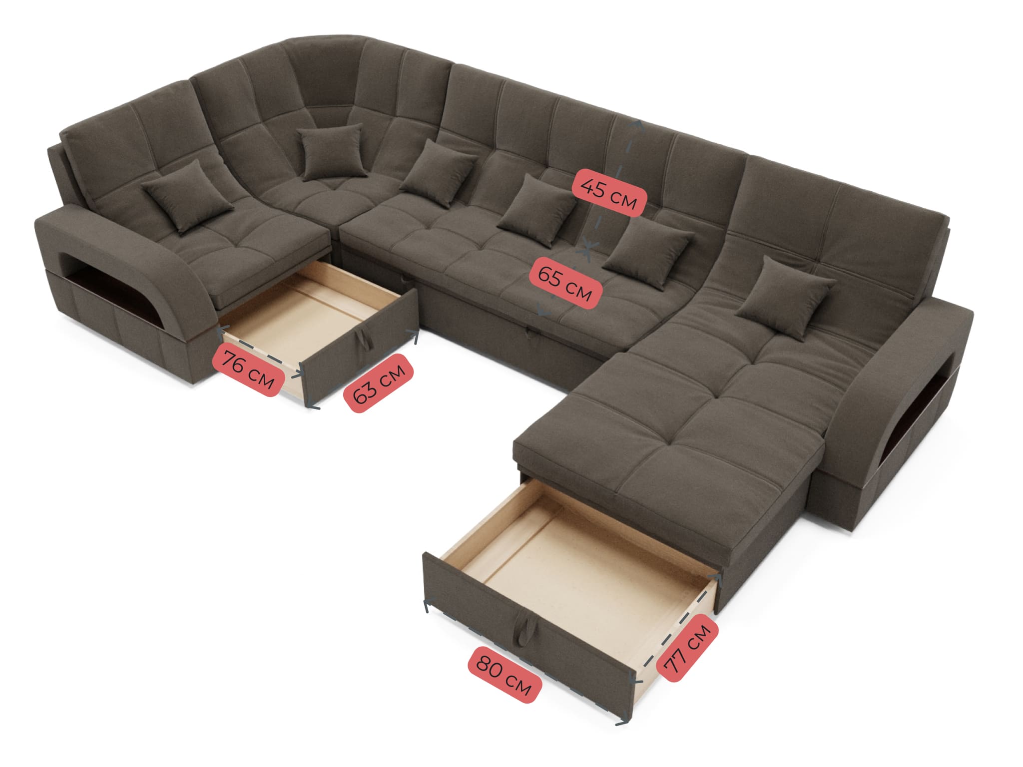 Подушки 6шт в комплекте. В чужих отзывах читала, что сзади ткань другая, но в нашем диване везде ткань одинаковая- его можно поставить посередине комнаты.