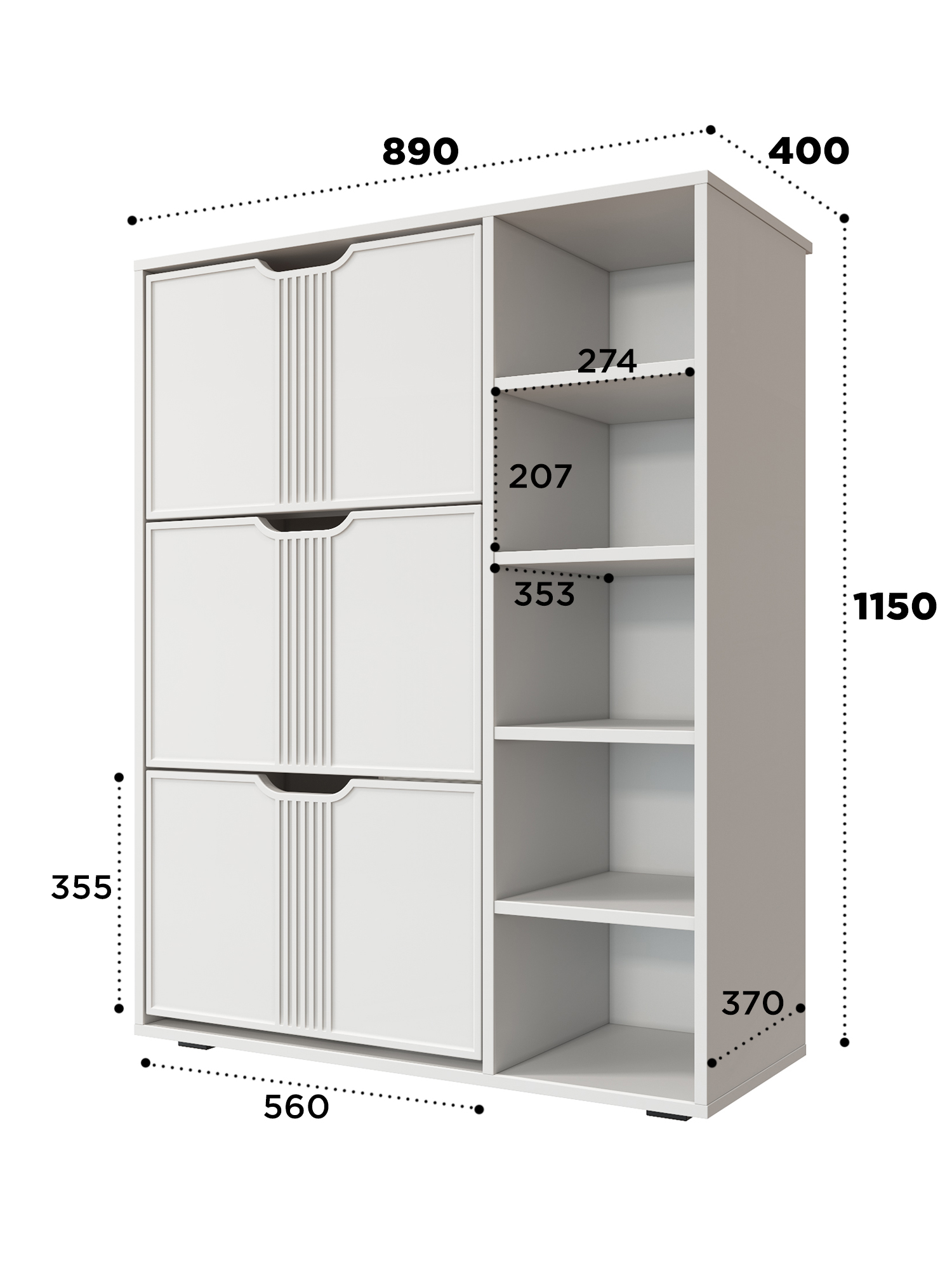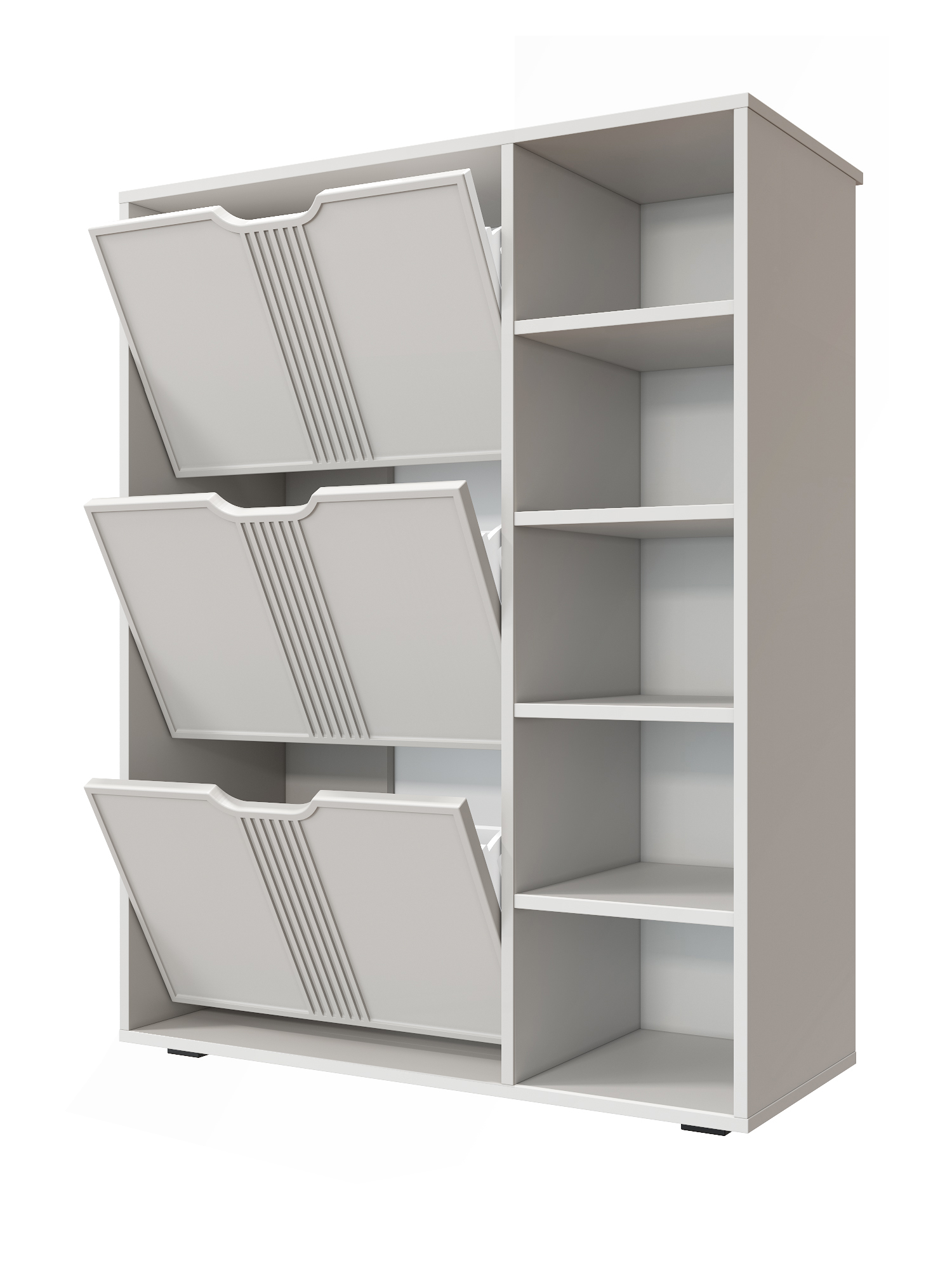 Тумба для обуви Эмилия ЭЛ-42 поможет создать уютную атмосферу в вашей прихожей. Изделие навсегда решит проблему разбросанной обуви по всему коридору. Тумба оснащена четырьмя полками и отделениями со специальными отсеками для хранения обуви. Свес крышки в 30 мм обеспечит прилегание к стене с любым плинтусом. Высота опоры 20 мм.